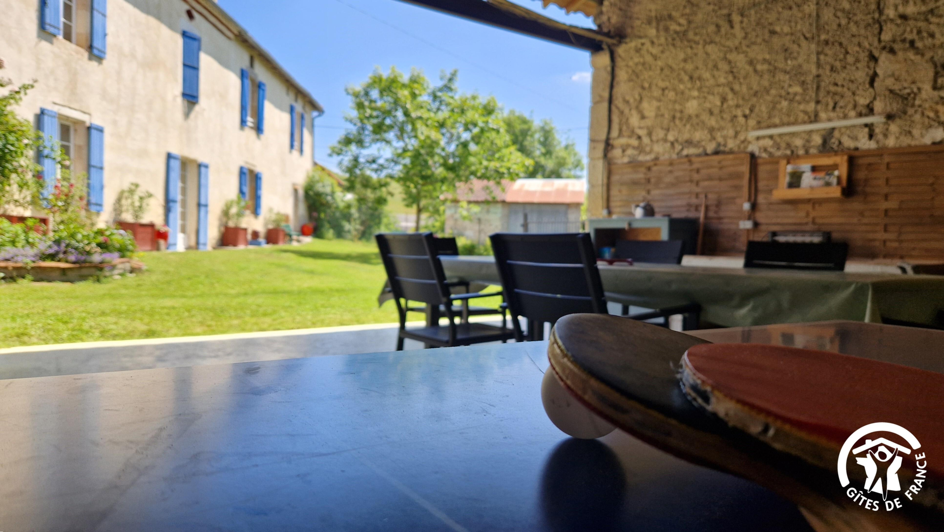 Son véritable atout : un préau couvert de 60 m², conçu comme une véritable pièce à vivre face au jardin, équipé d’une grande table, d’un salon de jardin, d’une table de ping-pong et d’un barbecue, pour des moments de détente et de convivialité.