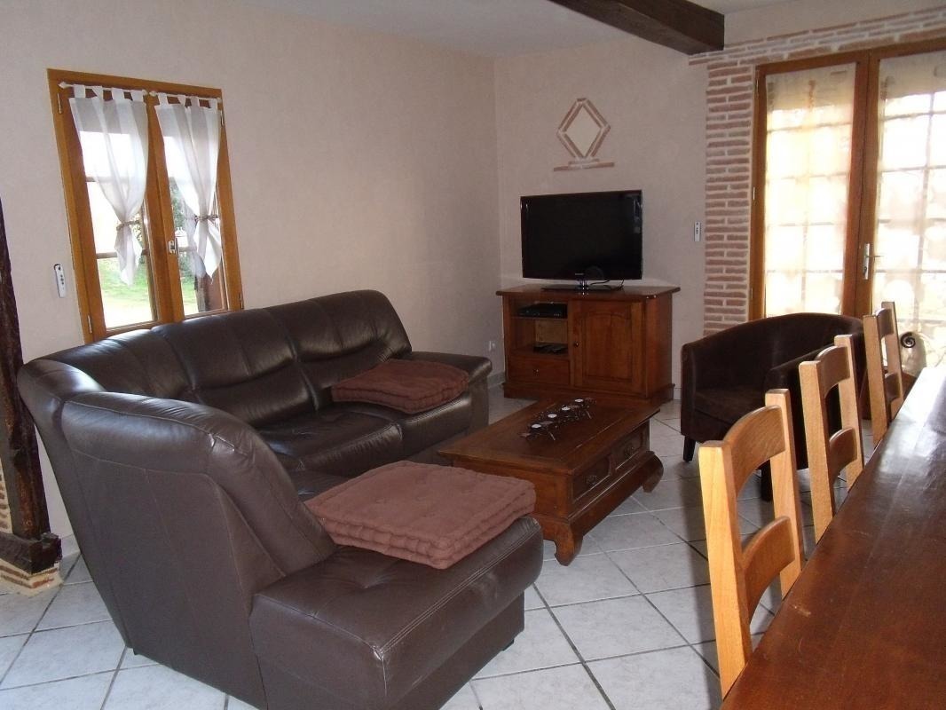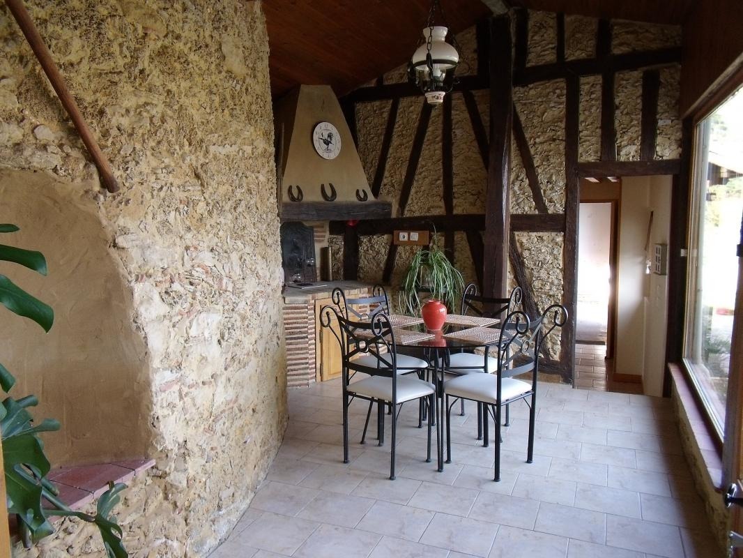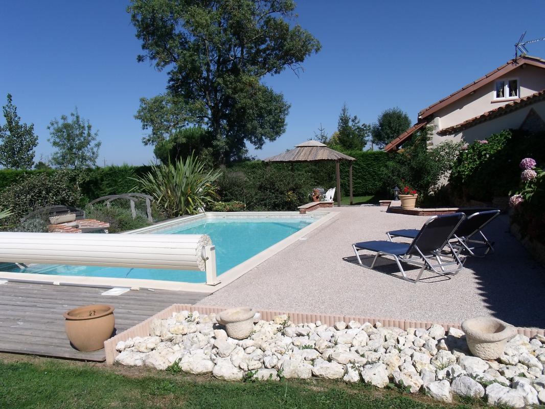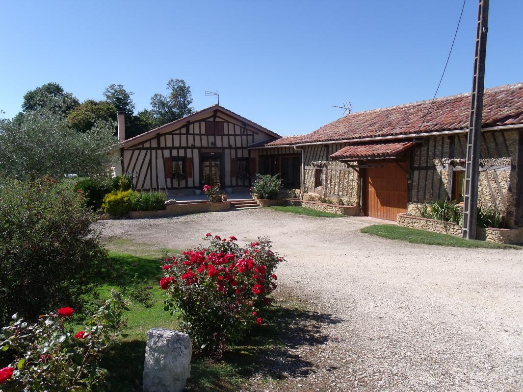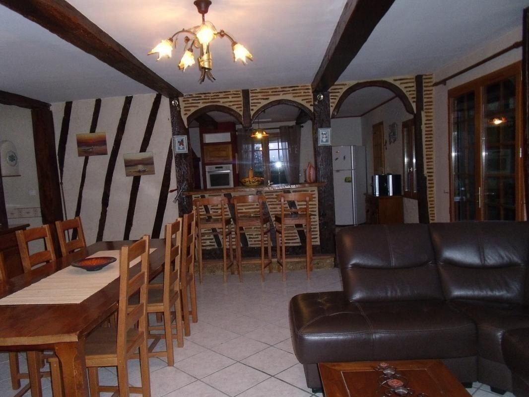 A la campagne, maison à colombages (115 m2 – rdc) avec terrasses, terrain (1500 m2), situé à proximité de l’habitation des propriétaires. Sur place : piscine au sel privative 8×4 – prof 145 – sécurisée par couverture manuelle.