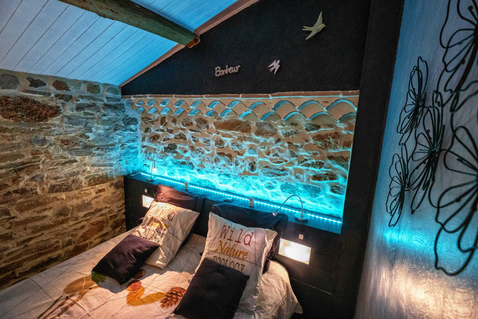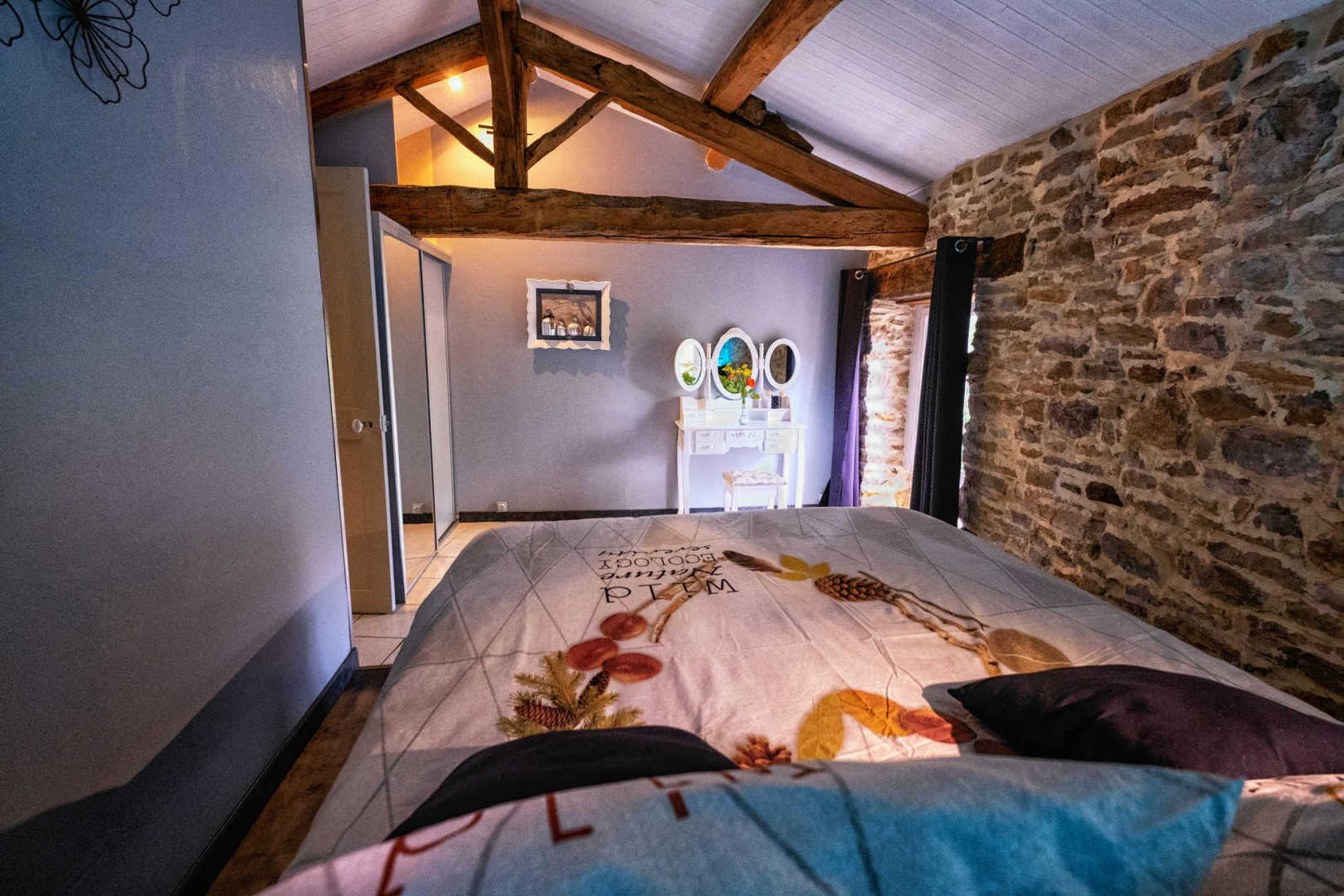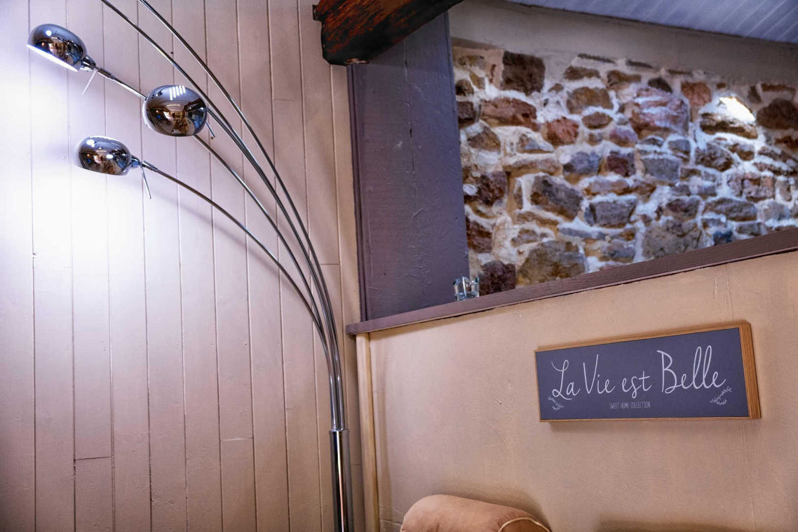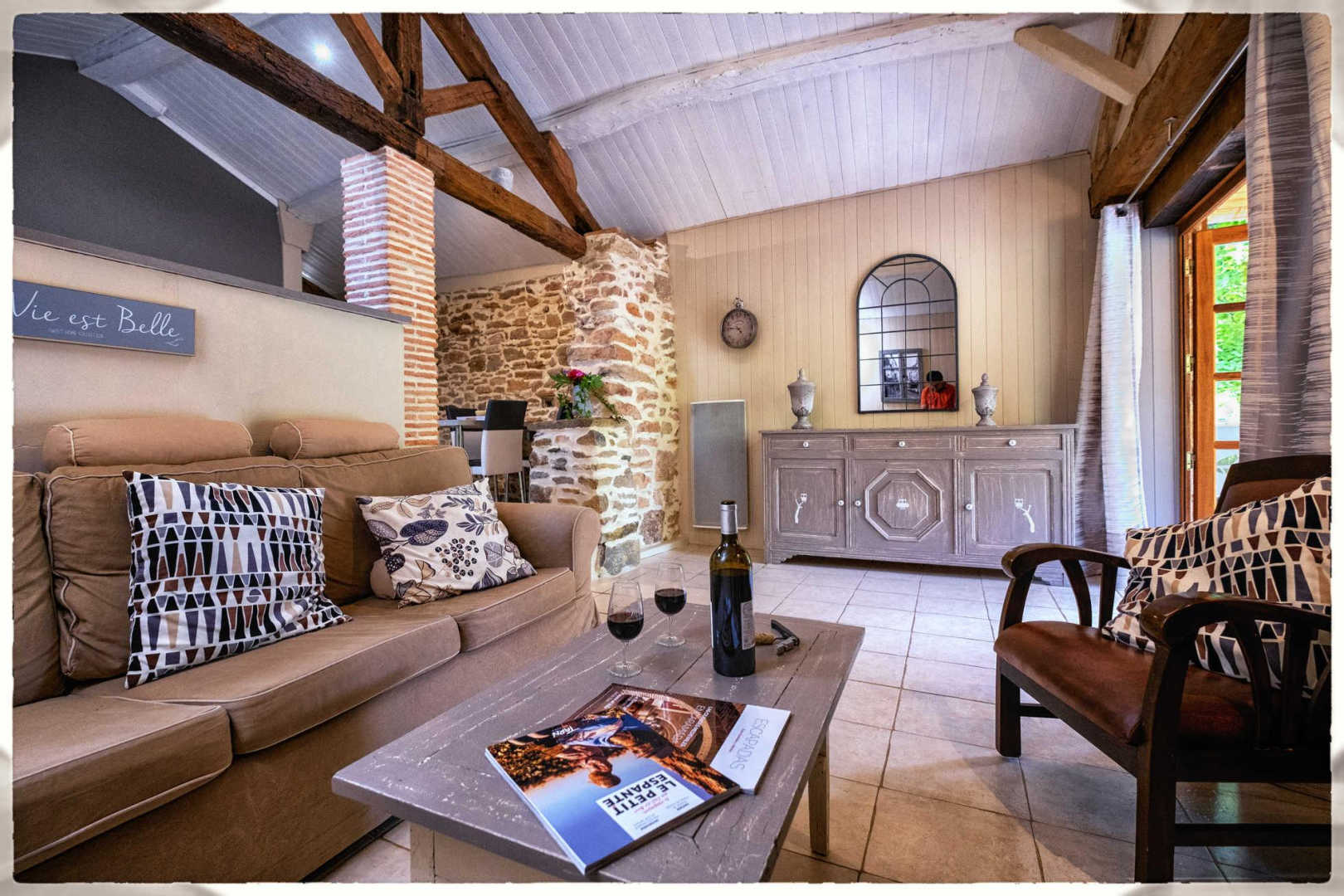 Ancienne grange avec ses pierres apparentes, restaurée par les propriétaires.