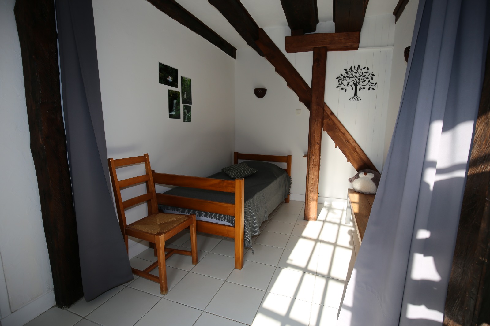 “La Gorge”, with its typical Haut Languedoc architecture, is a detached house in the middle of the hamlet, on the edge of the forest. In the past, the ground floor was used to house the animals. These stables were used for natural heating and the first floor of the building was used as a home.
