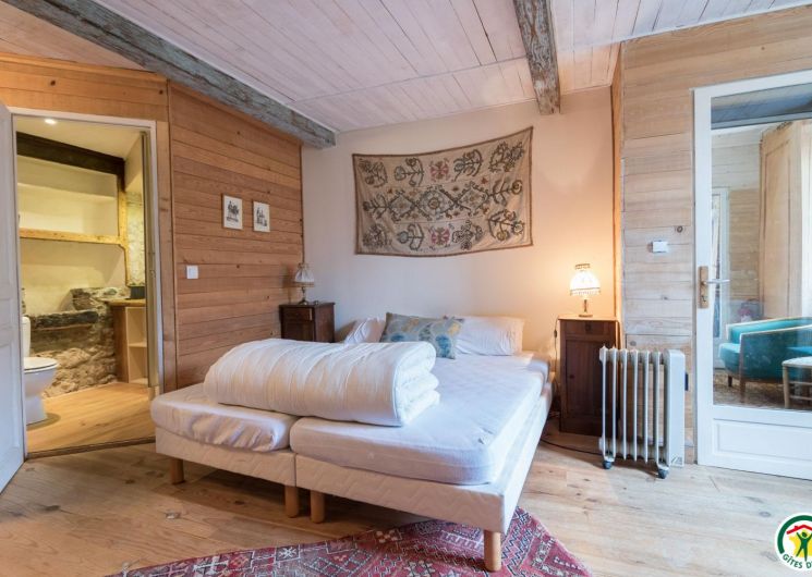 – On the second floor under the rafters: 1 bedroom (1 double bed 140x190cm) and 1 small dormitory (1 double bed 140x190cm and 3 single beds 90x190cm). Each sleeping unit (bedroom or dormitory) has its own private shower room/WC, except on the second floor where the WC is shared.