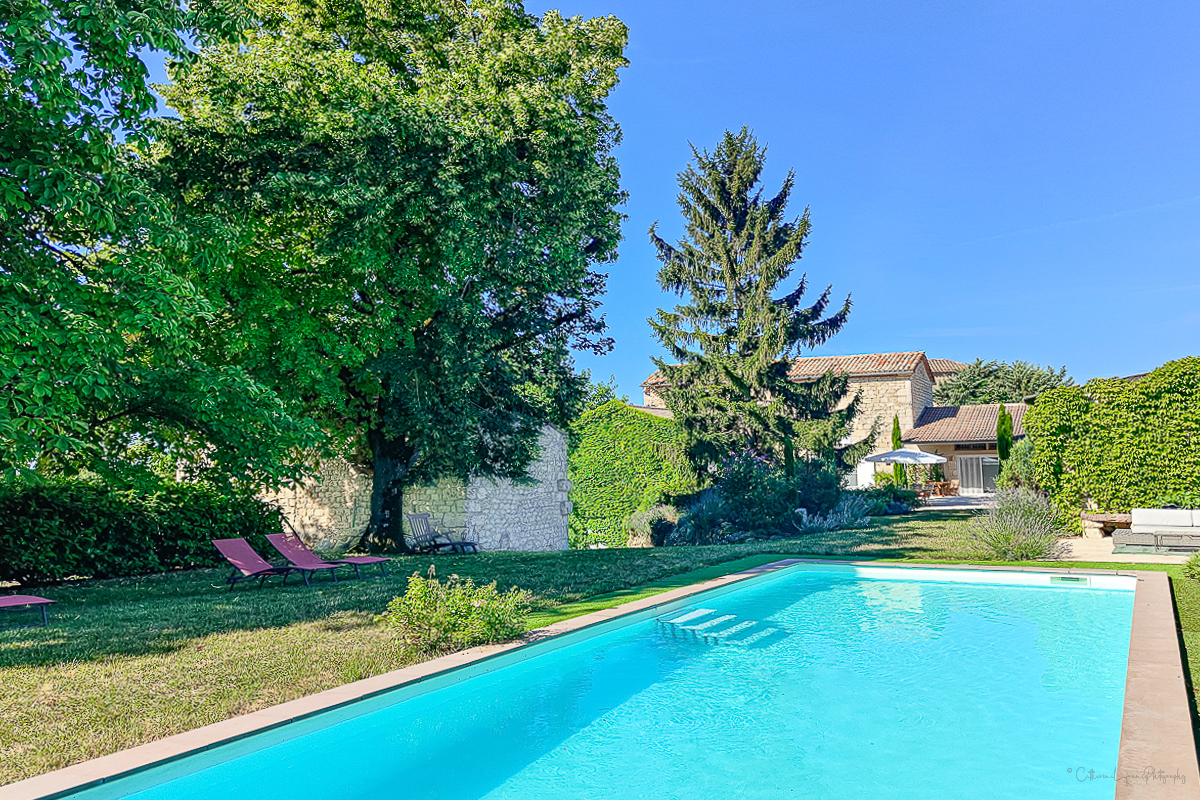 19th century white stone property, set in wooded grounds with heated swimming pool, ideally located in a quiet country setting 4 km from Cordes sur Ciel, near Albi, furnished to a very high standard.