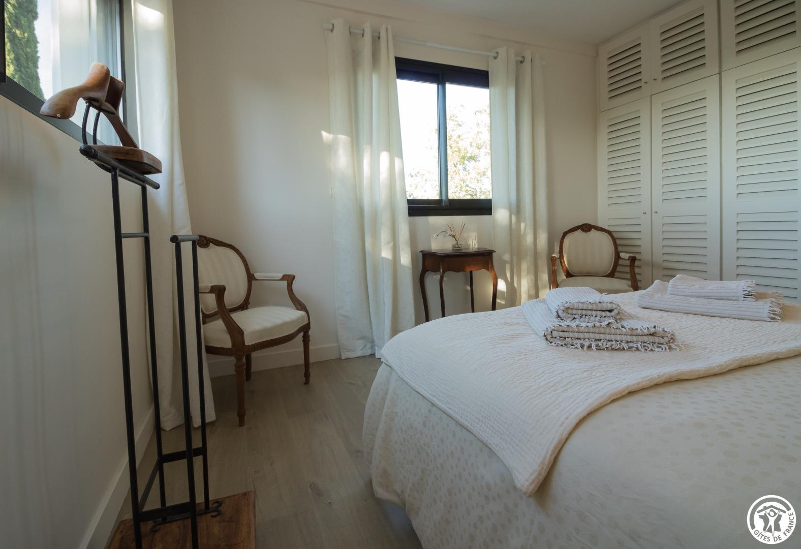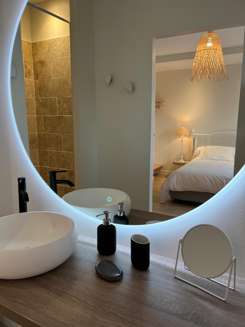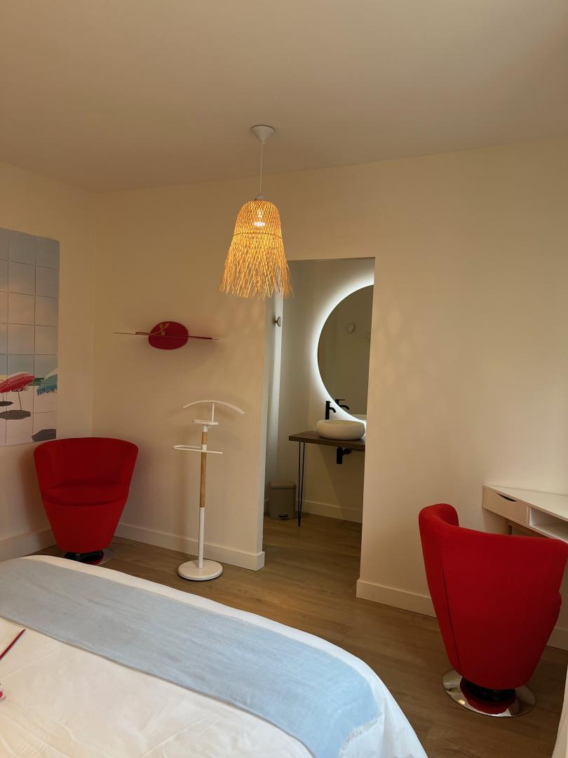 Das L’Intemporelle liegt 5 km von der südlichen Umgehungsstraße von Toulouse entfernt, in einer sehr privilegierten Umgebung. Nähe zur rosa Stadt und Ruhe dank des 1 Hektar großen Gartens. 4 klimatisierte Zimmer, davon zwei Familienzimmer (4 Personen). Wunderschöner Poolbereich von über 250 Quadratmetern, Gartenmöbel, skandinavische Stühle, Sonnenliegen… Boulodrome, großer geschlossener Parkplatz, Elektroladestation. Innenbereich: Erdgeschoss: 120 m² großes, sehr helles Wohnzimmer mit Blick auf den Pool und den Garten, Billardtisch mit Kamin. Zimmer: – Erdgeschoss: Klimatisiertes Familienzimmer: “La Valse du Temps (1 Bett 140 cm) und Le Temps qui Court (2 Einzelbetten)”, neue trendige, helle und sanfte Dekoration. Badezimmer, schöne Dusche und Waschbecken, unabhängig von der Toilette. – Obergeschoss: Klimatisiertes Familienzimmer “Une Seconde” und ?’Une Minute”, jeweils mit einem 140 cm breiten Bett, schöne Schränke, sehr schöner Blick auf das Tal. Großes Badezimmer mit großem Waschtisch, Dusche und Toilette. Das klimatisierte Zimmer “Un siècle” hell und trendig dekoriert, Bett 160 cm, eigenes Bad, Kleiderschrank, Schreibtisch. Freier Blick auf den Eingangsgarten. Das klimatisierte Zimmer “Une Éternité”, große Räume, zwei Balkone mit Blick auf das Garonne-Tal, Doppelbett 160 cm, Schreibtisch, Kleiderschrank, Sitzecke. Ein geräumiges, lichtdurchflutetes Badezimmer. Gourmet-Frühstück auf der Terrasse im Sommer oder im großen, lichtdurchfluteten Wohnzimmer Gästetisch auf Anfrage 26? , Flasche Wein 12? Traduction automatique par DeepL via DATAtourisme
