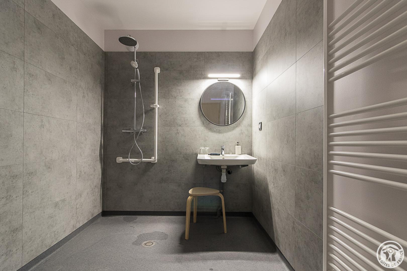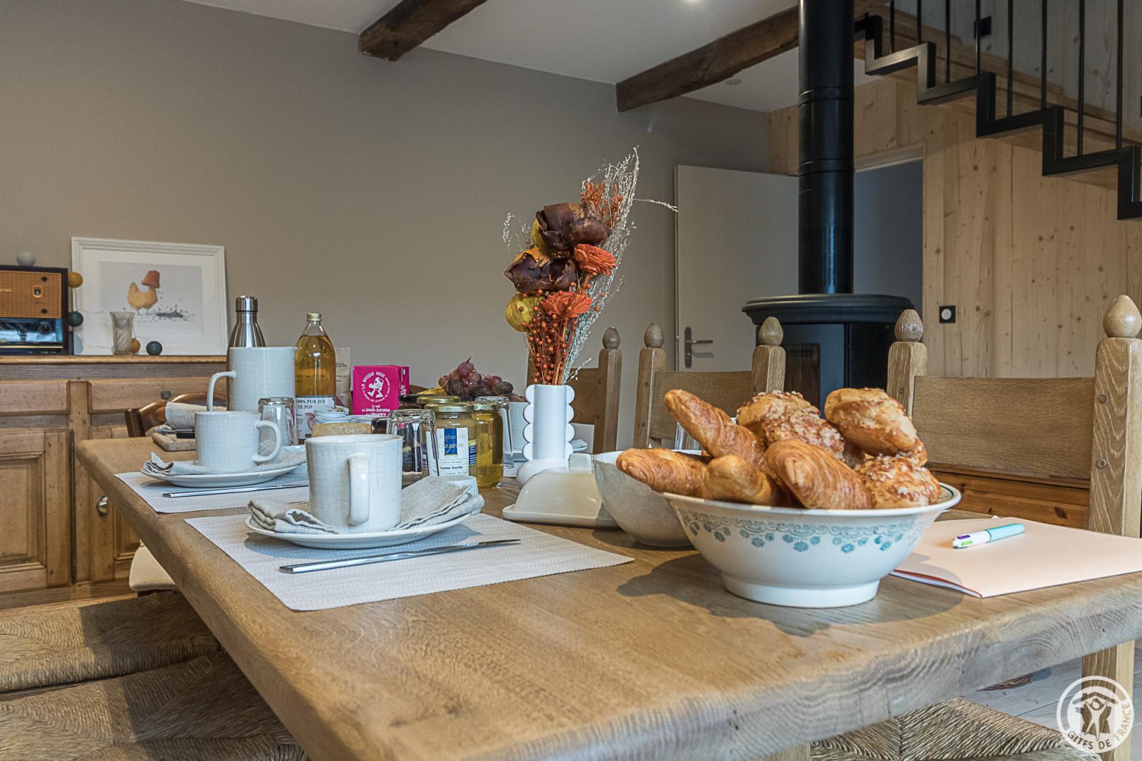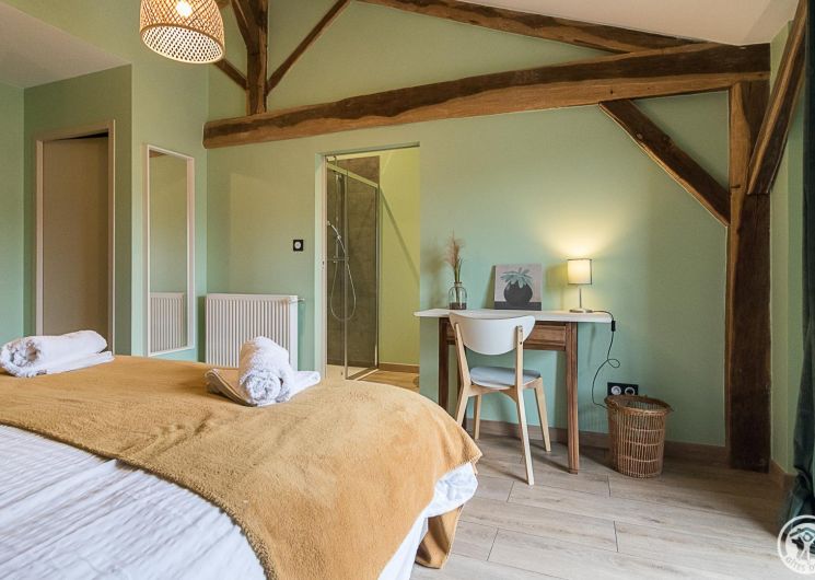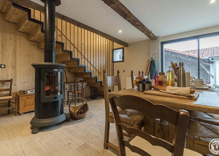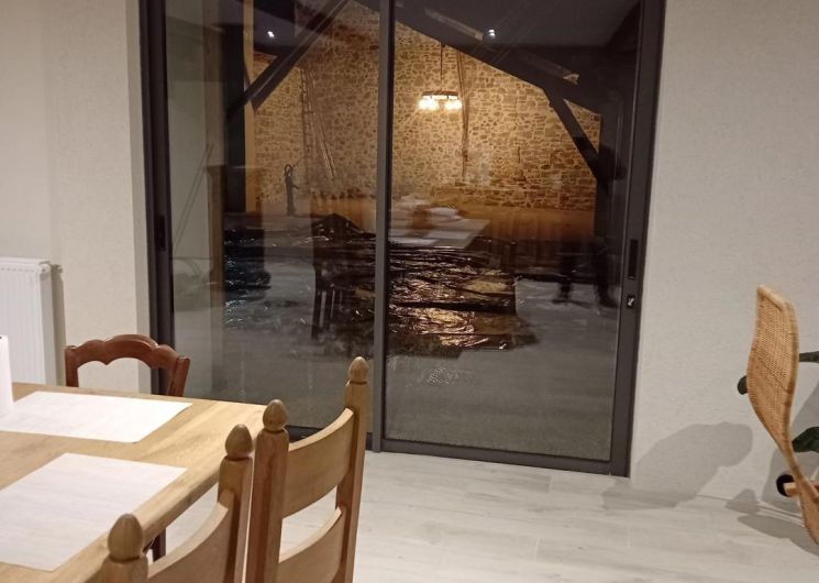 Ground floor: reception area, guest lounge (wood-burning stove, dining area and sitting area), Chambre “Marie”, accessible to people with reduced mobility.