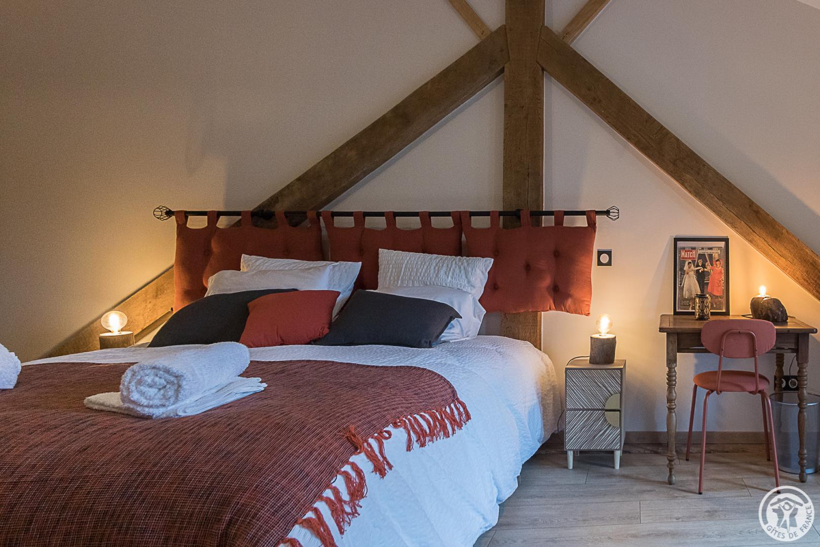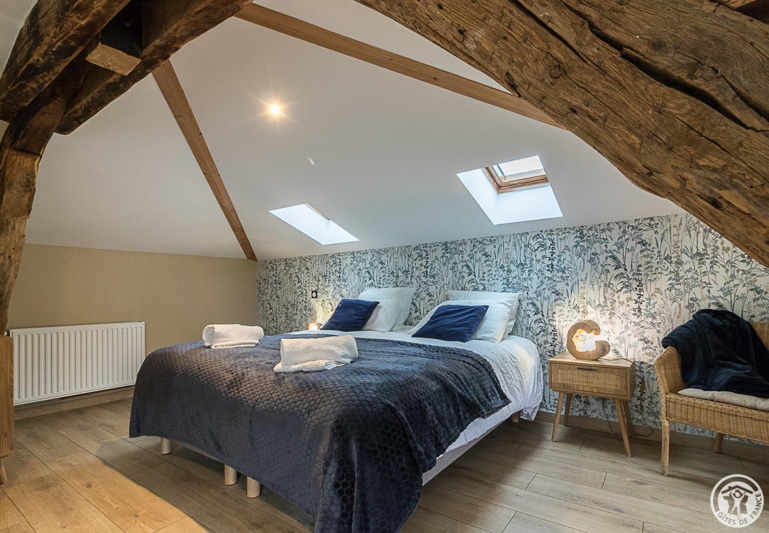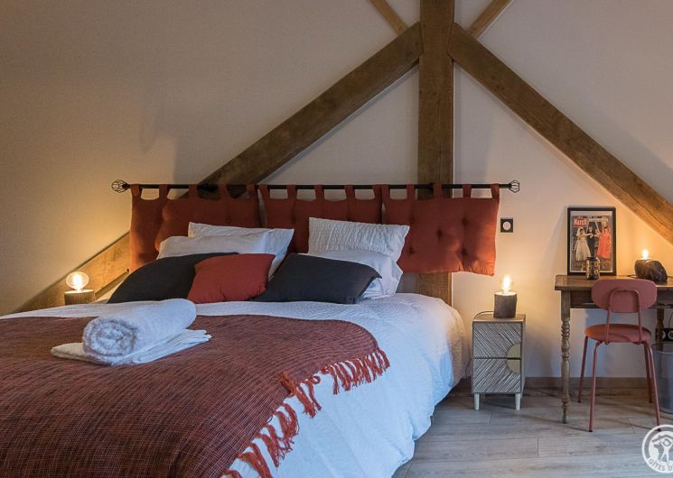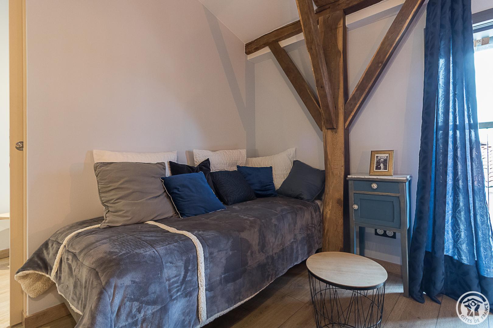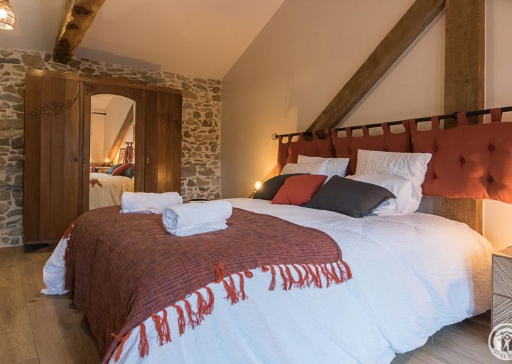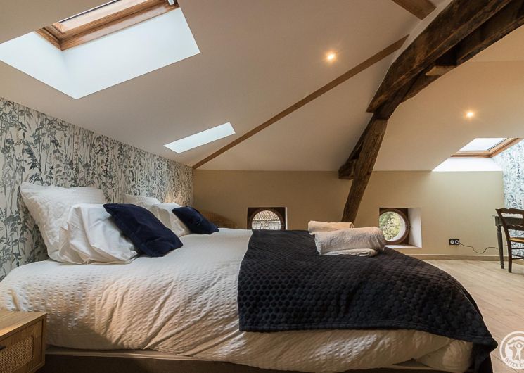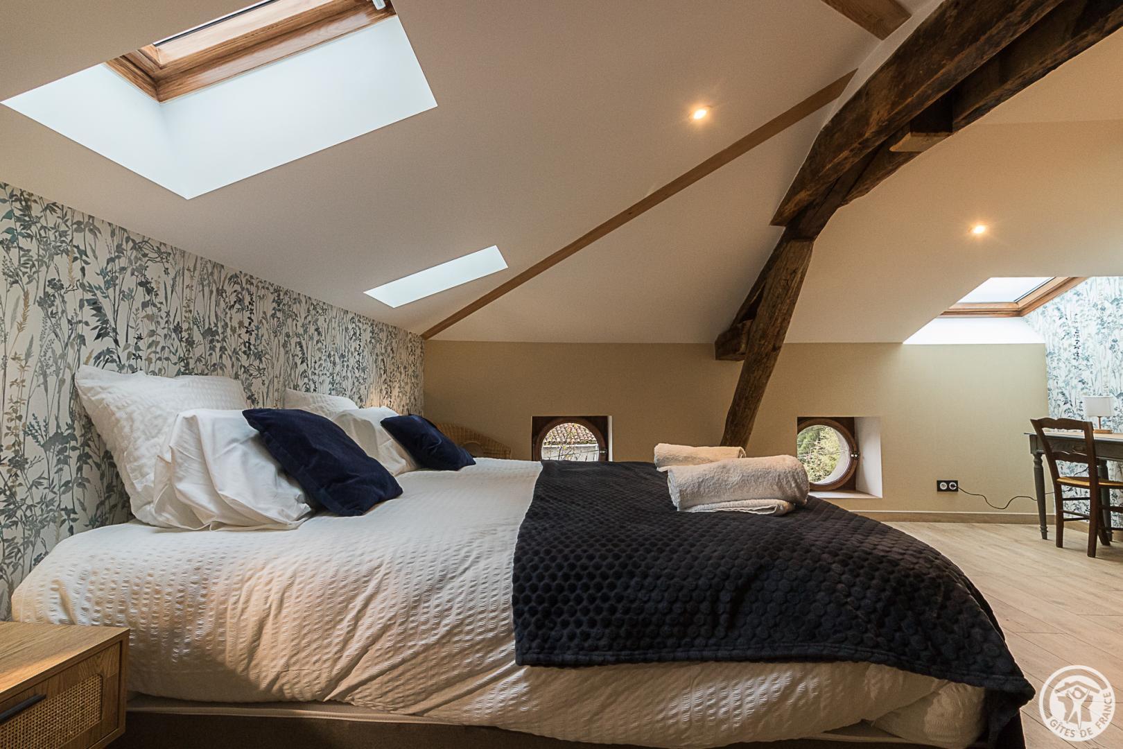 2nd floor with sloping ceilings: “Emilienne” family room, comprising 2 rooms sharing the same bathroom.