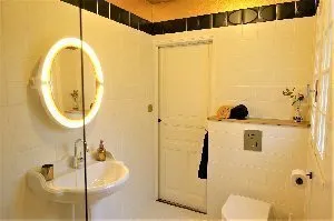 Dans le salon, se trouvent une luxueuse cuisine ouverte, très bien équipée. Par ailleurs, la jolie chambre avec un confortable lit king-size et la salle de bain avec sa douche à effet de pluie très agréable, confèrent une atmosphère détendue au gîte.