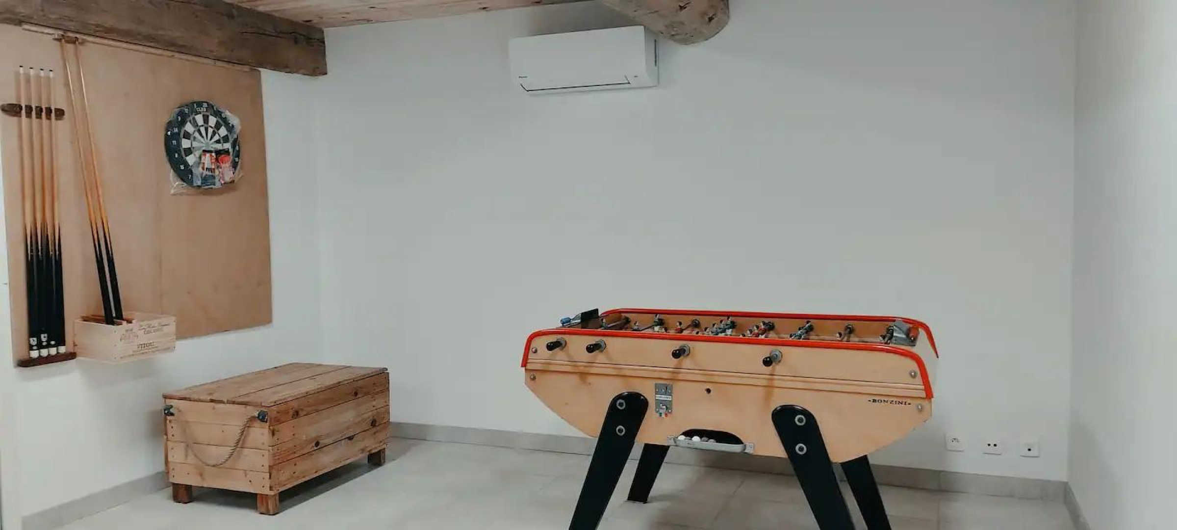 ** Attenant à la salle festive, une salle de jeux avec babyfoot, billard, jeu d’arcade, flipper, borne Sega®, jeu de fléchettes, jeux de sociétés et table de ping-pong