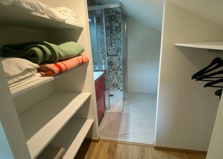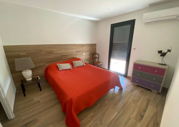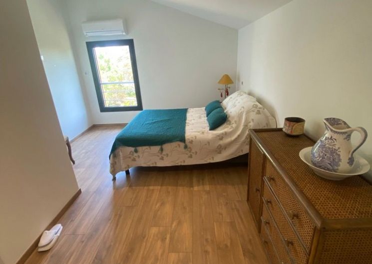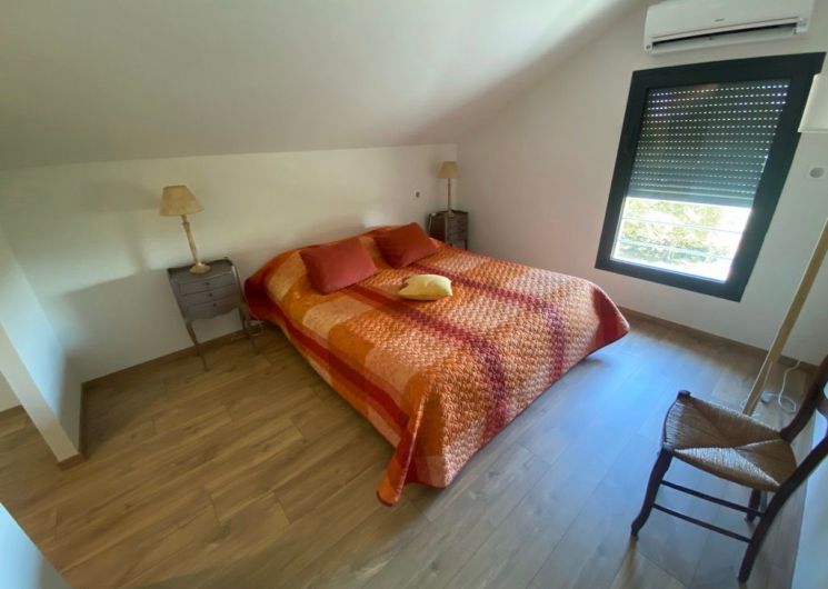 The accommodation comprises an entrance hall with storage cupboards and separate toilet. A living room with sitting area (sofa, 2 armchairs, TV), 2 dining tables, fitted kitchen (dishwasher, fridge, freezer) opening onto a terrace with garden furniture and plancha. From this living area, there is access to a bedroom (1 x 160cm bed) with en-suite shower room and wc. Upstairs, one bedroom (1 double bed, shower room) and 1 bedroom (2 single beds, shower room). Separate WC. Garage and storeroom with washing machine. Wifi in the accommodation. Bed linen and towels included in the price. Grassed area in front of the terrace, gravelled courtyard, all fully fenced. All rooms are air-conditioned. Baby equipment available on request. Electricity surcharge according to arrival/departure meter reading (8 kwh/day included in the price).
