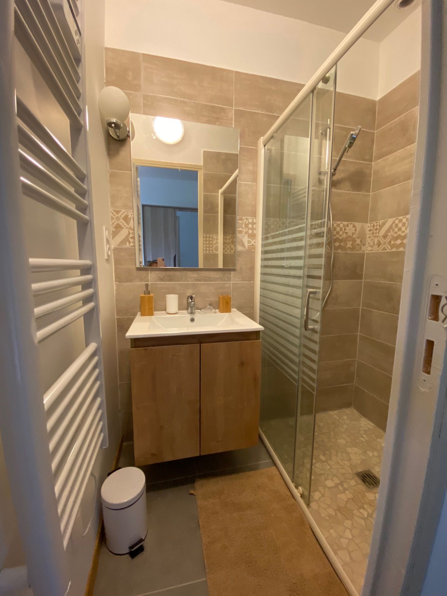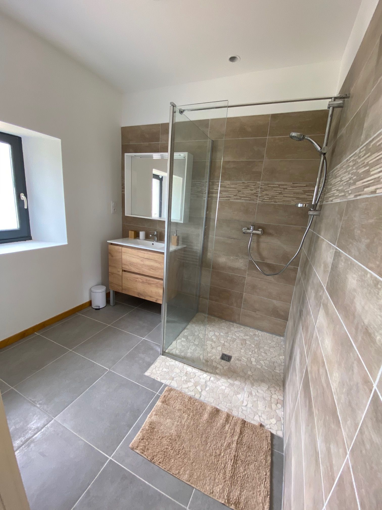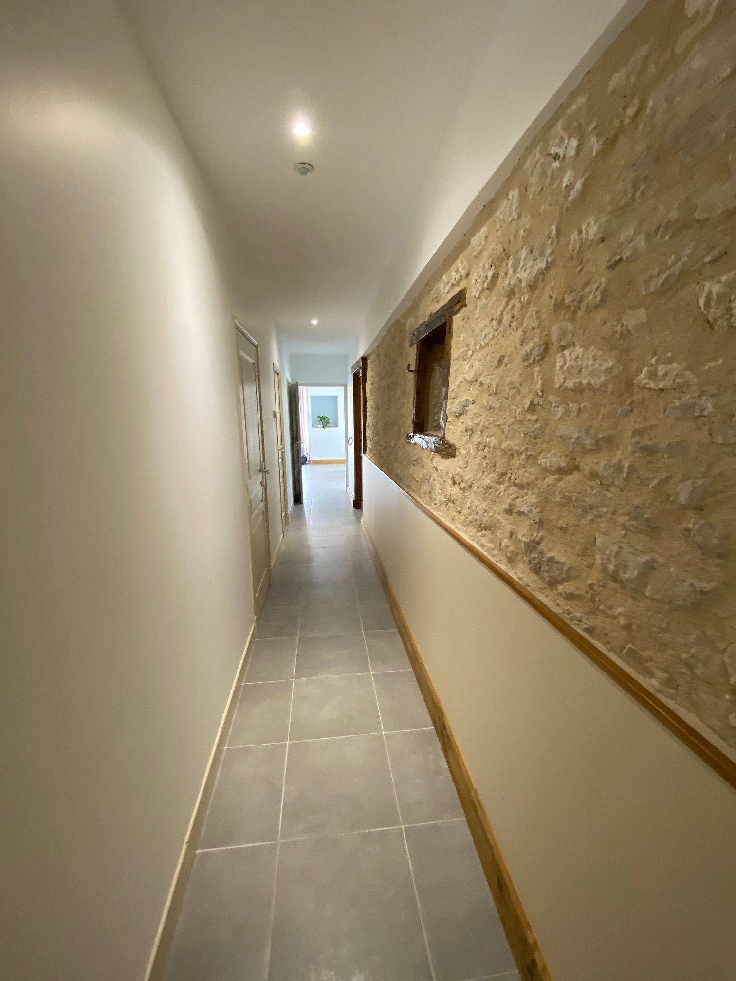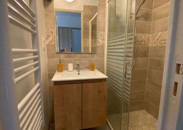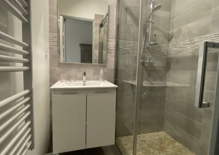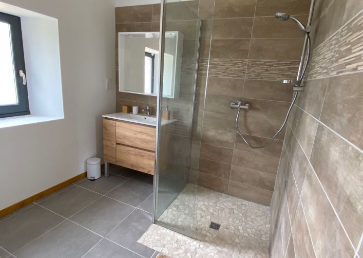 A corridor leads to 1 bedroom (1 x 160cm bed), 1 bedroom (1 x 160cm bed and 1 x 0.90cm bed), 1 bedroom (1 x 160cm bed), a shower room (washbasin and shower) in each ground floor bedroom. One bedroom with its own shower room is accessible to people with reduced mobility.
