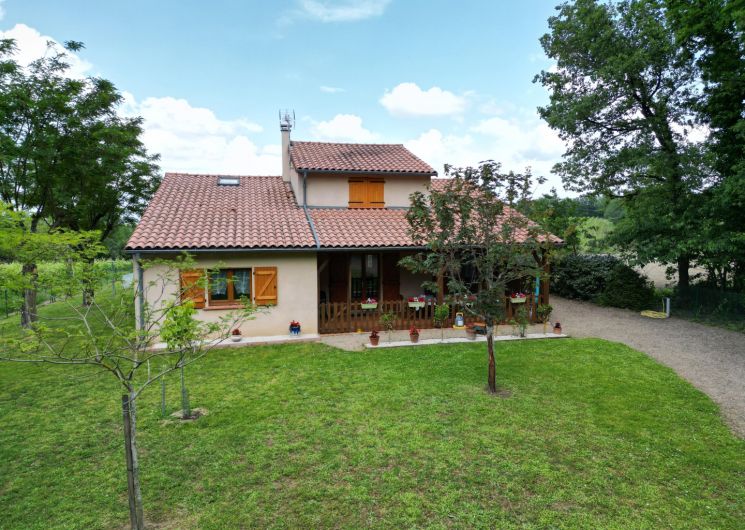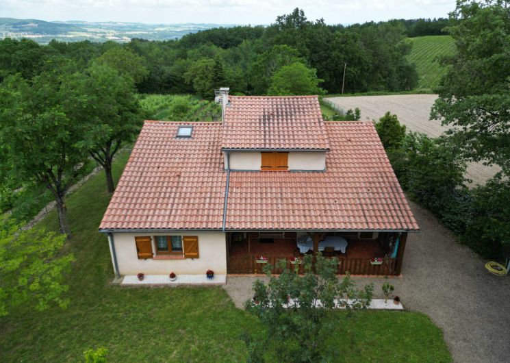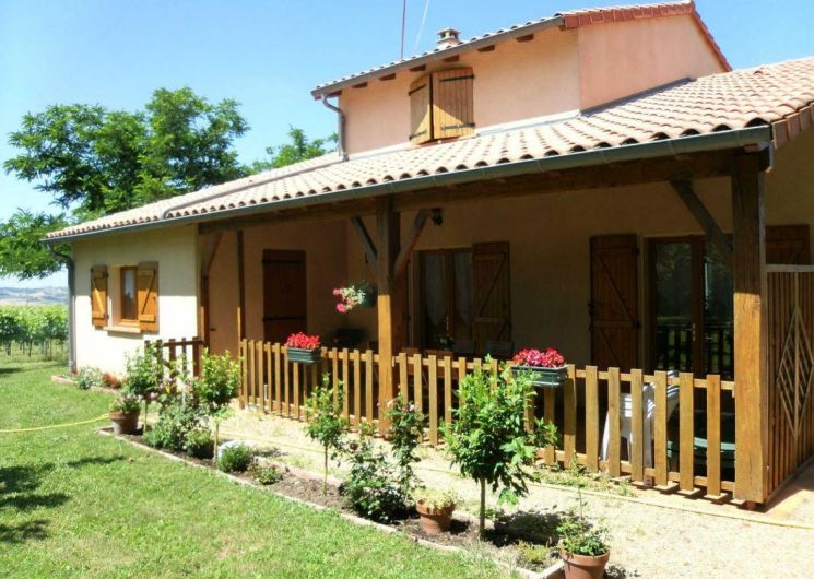 Independent gîte. Gr.Fl: living-rm-cum-kitchenette, 1 bdrm (1 double bd), shower rm. Upstairs: 2 bdrms (1 dble bd, 2 single bds), 2 indep. wc. Fuel heating. Wash.mach, dishwash, TV, micro-w. Grounds with fenced garden, covered terrace, parking. Garden table & chairs, BBQ. Baby equipment. Animals allowed. Poss. Bd sheets rent. and cleaning serv. Welcome to the heart of the Tarnais countryside, in this lovely gîte of the Pays de Cocagne. Backed up to a wood grove and surrounded by vineyards, it is independent, within its fenced park rich in trees. At a stone’s throw of the Gaillacois Wine-growing Area and the Circuit des Bastides, it stands in the centre of the triangle Albi-Castres-Toulouse.