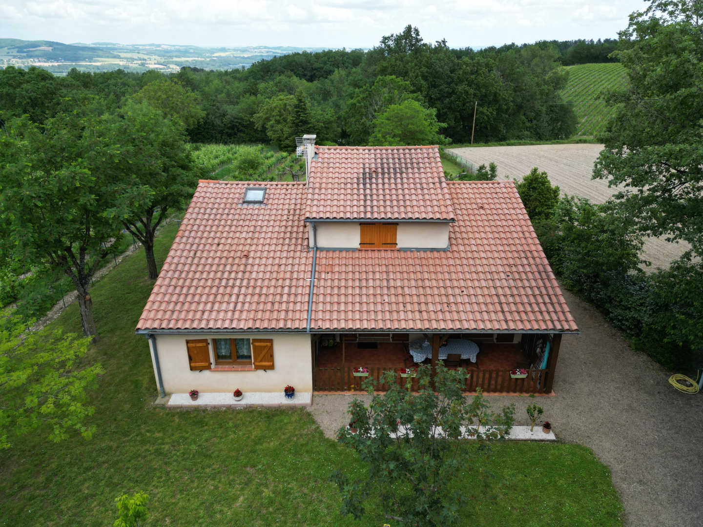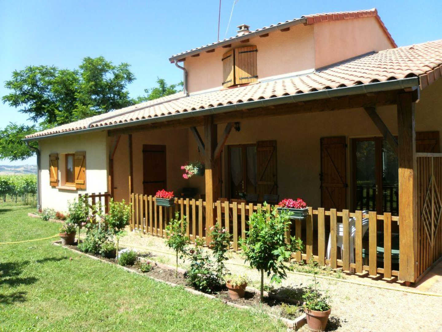 Independent gîte. Gr.Fl: living-rm-cum-kitchenette, 1 bdrm (1 double bd), shower rm. Upstairs: 2 bdrms (1 dble bd, 2 single bds), 2 indep. wc. Fuel heating. Wash.mach, dishwash, TV, micro-w. Grounds with fenced garden, covered terrace, parking. Garden table & chairs, BBQ. Baby equipment. Animals allowed. Poss. Bd sheets rent. and cleaning serv. Welcome to the heart of the Tarnais countryside, in this lovely gîte of the Pays de Cocagne. Backed up to a wood grove and surrounded by vineyards, it is independent, within its fenced park rich in trees. At a stone’s throw of the Gaillacois Wine-growing Area and the Circuit des Bastides, it stands in the centre of the triangle Albi-Castres-Toulouse.
