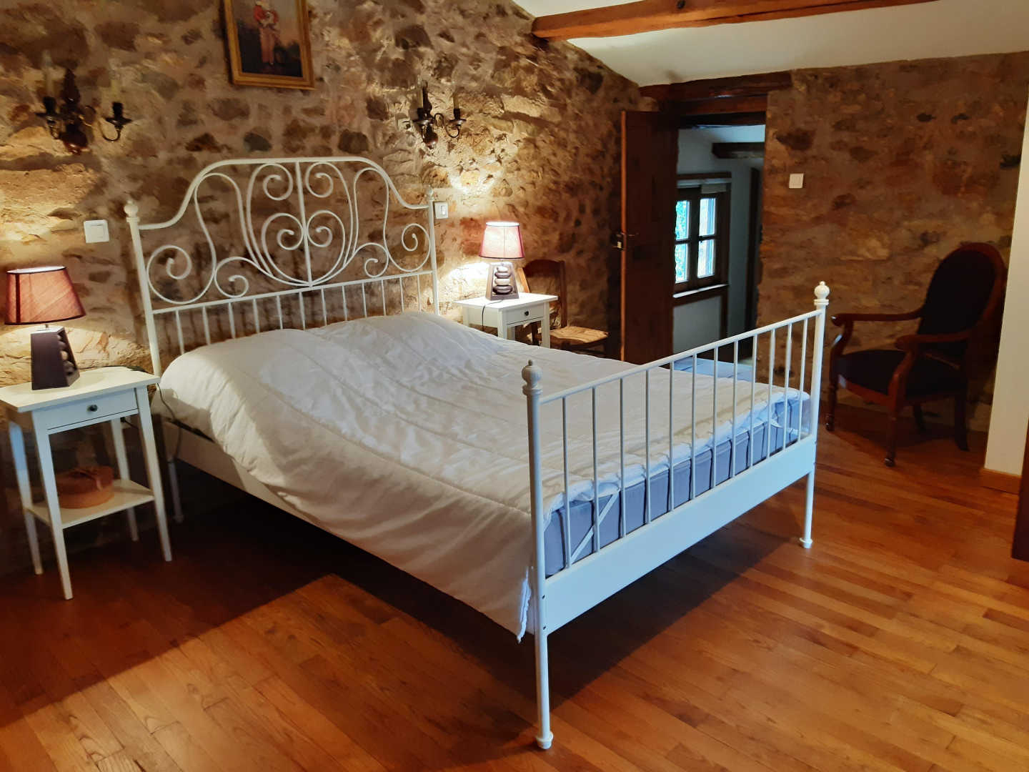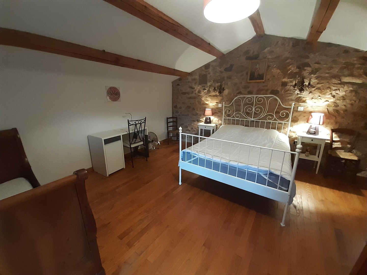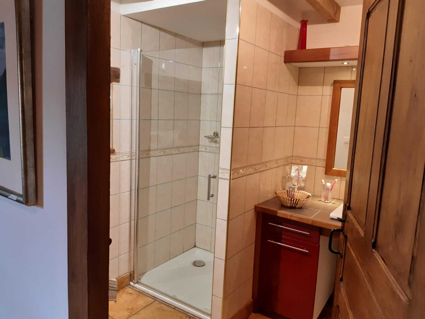Rez-de-chaussée : pièce à vivre avec coin salon (cheminée), cuisine ouverte toute équipée, chambre (un lit double en 140) salle d’eau, wc.