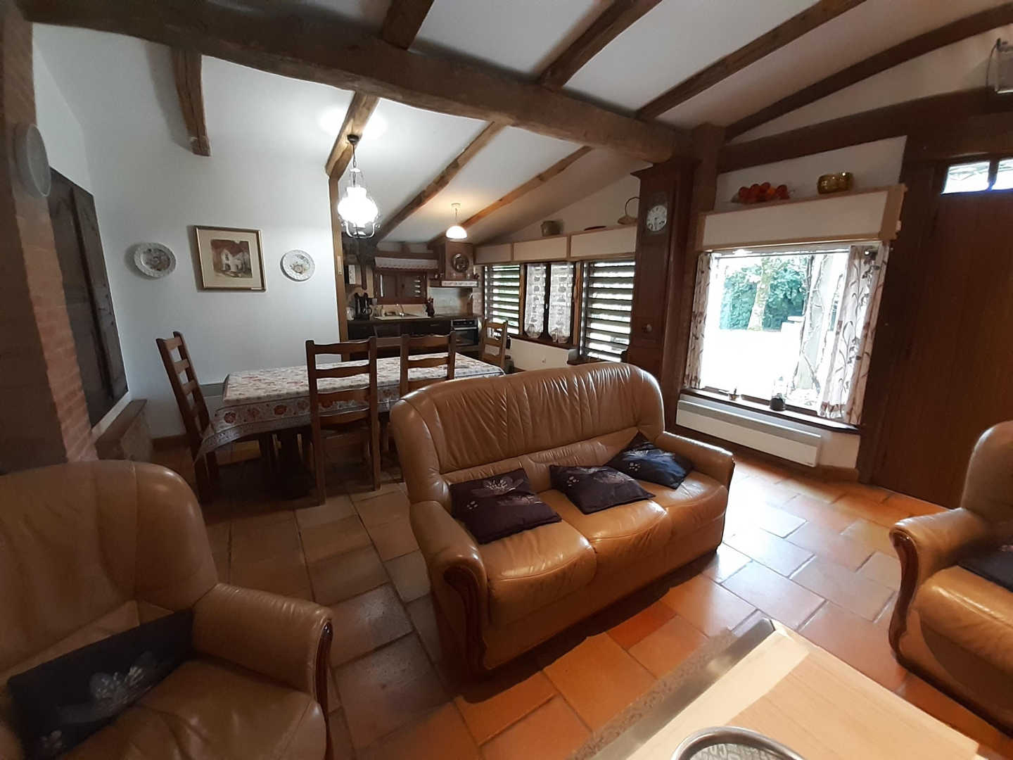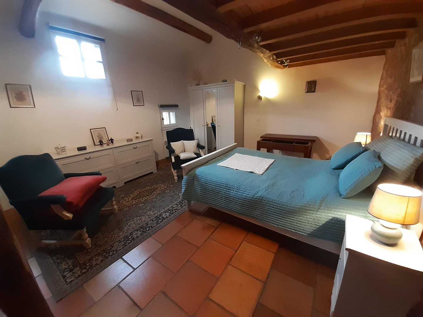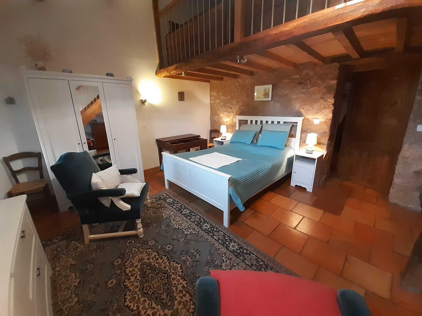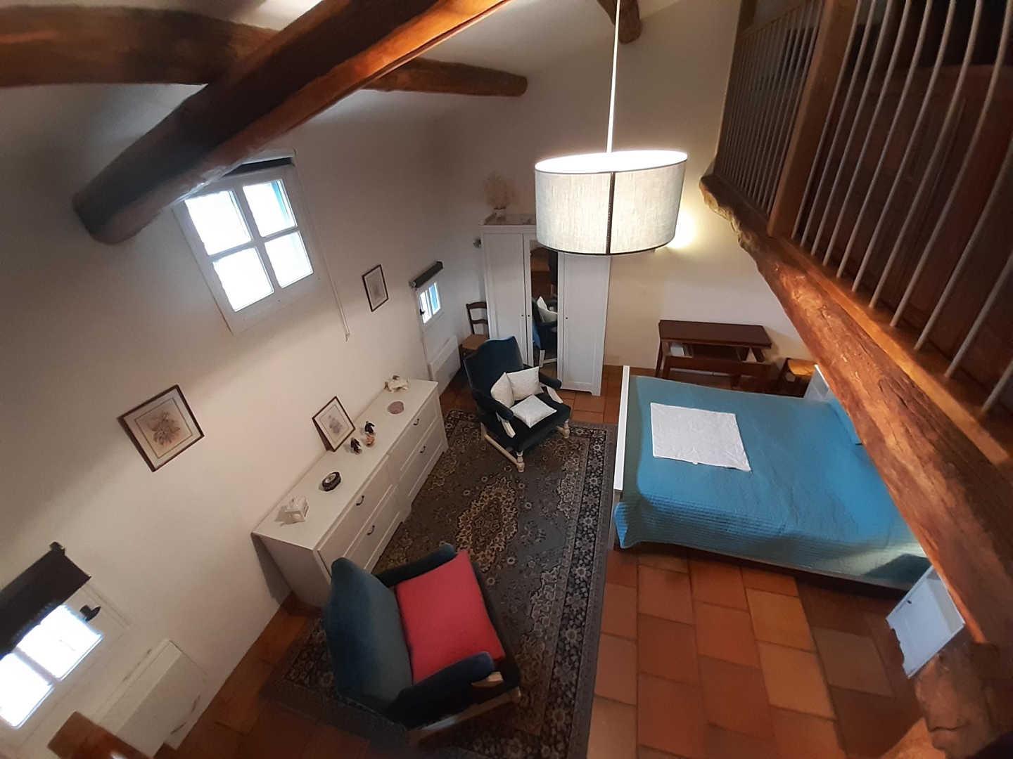 Rez-de-chaussée : pièce à vivre avec coin salon (cheminée), cuisine ouverte toute équipée, chambre (un lit double en 140) salle d’eau, wc.