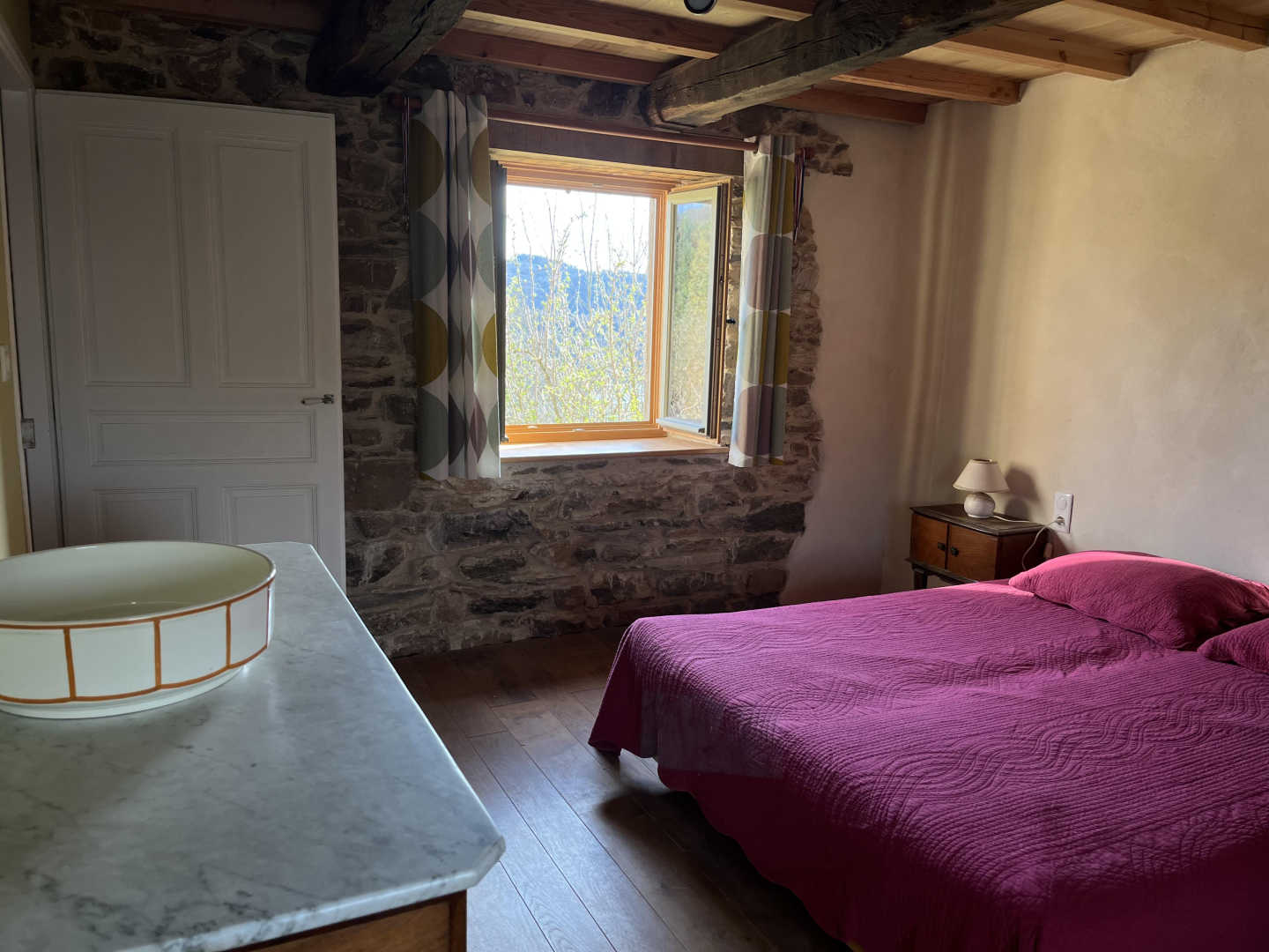 Le gîte a été rénové récemment par Philippe, architecte, dans un esprit écologique avec des matériaux naturels et respirants (murs en chaux, dalle chaux chanvre, carreaux de terre cuite, planchers en chêne…). Le gite et l’eau sont chauffés grâce à une chaudière au bois et aux panneaux solaires ce qui permet des séjours en toute saison.