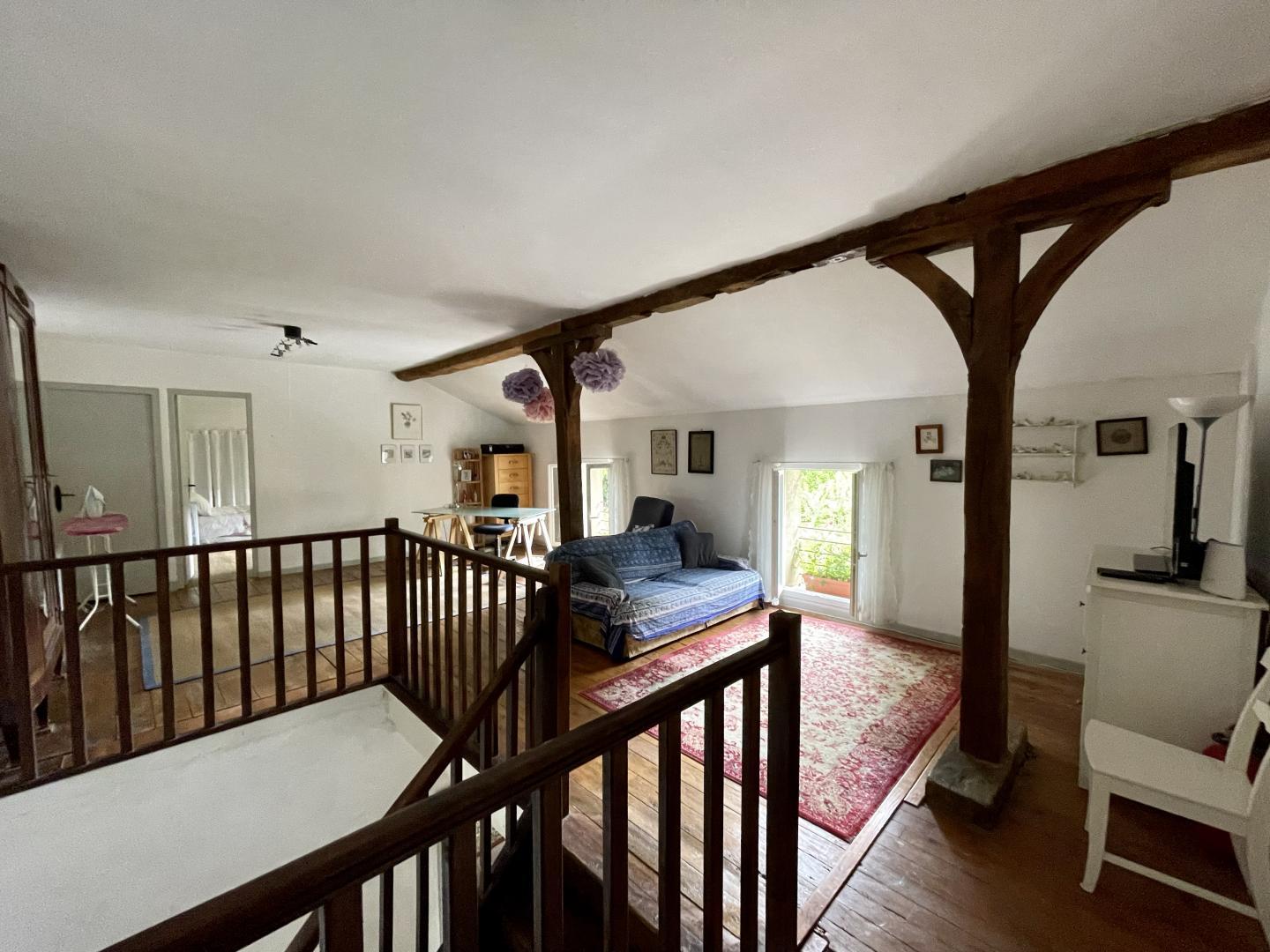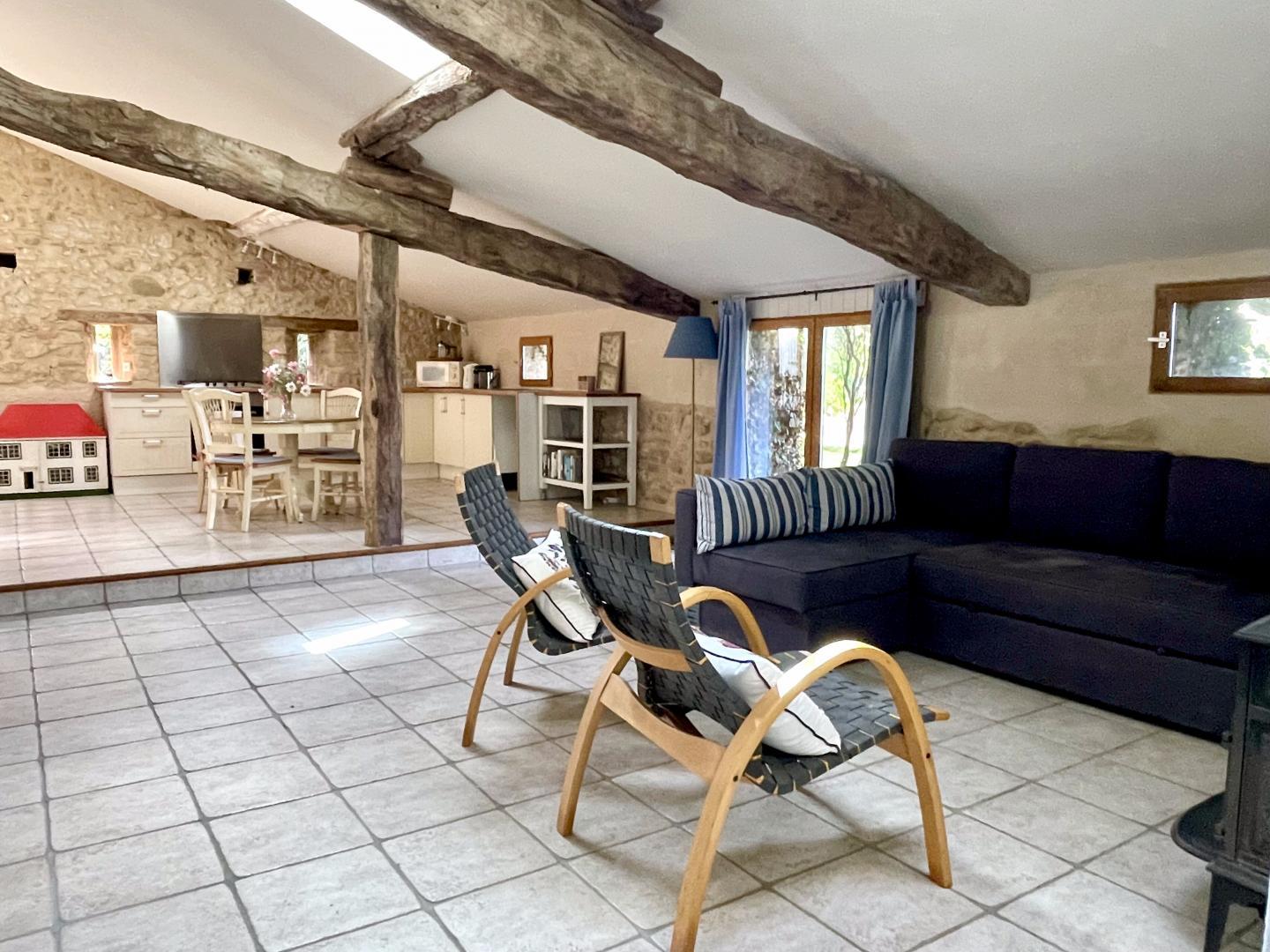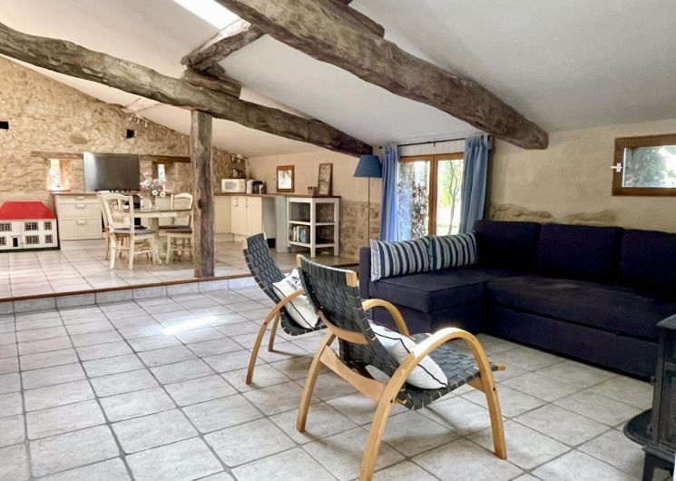 Gîte annexe 86m2 with independent access on ground floor: living room with kitchen, shower room/WC