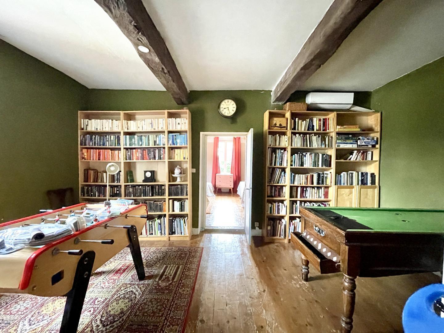 Main house 430m2: large living room with open-plan kitchen, utility room, sitting room with large-screen TV, games room/library. Shower room/WC. First floor: mezzanine work area for 10 people, landing with lounge area, 8 bedrooms, shower room with bath.