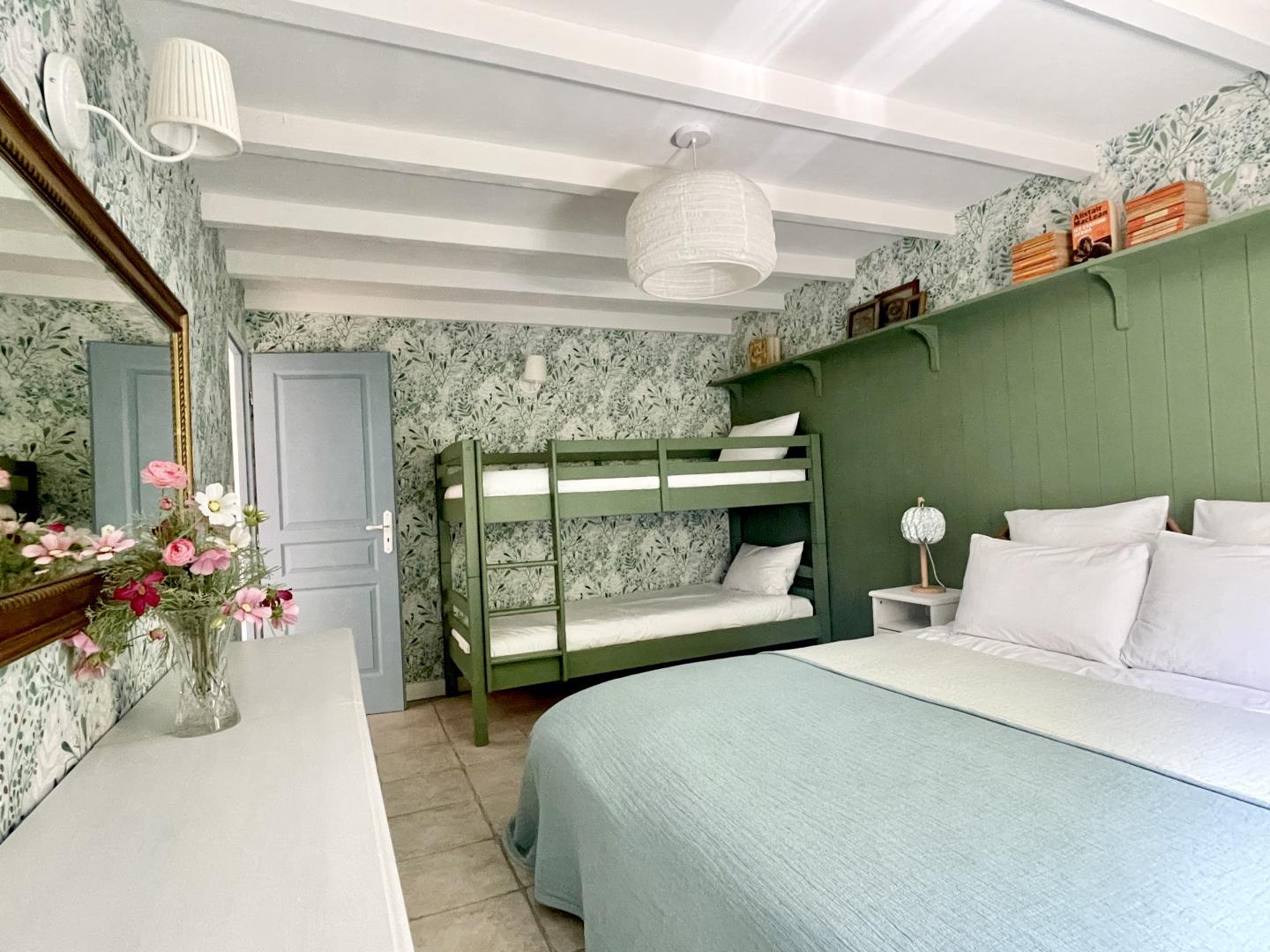 -Family room on ground floor (1 double bed 140cm + 2 single beds 80cm)
