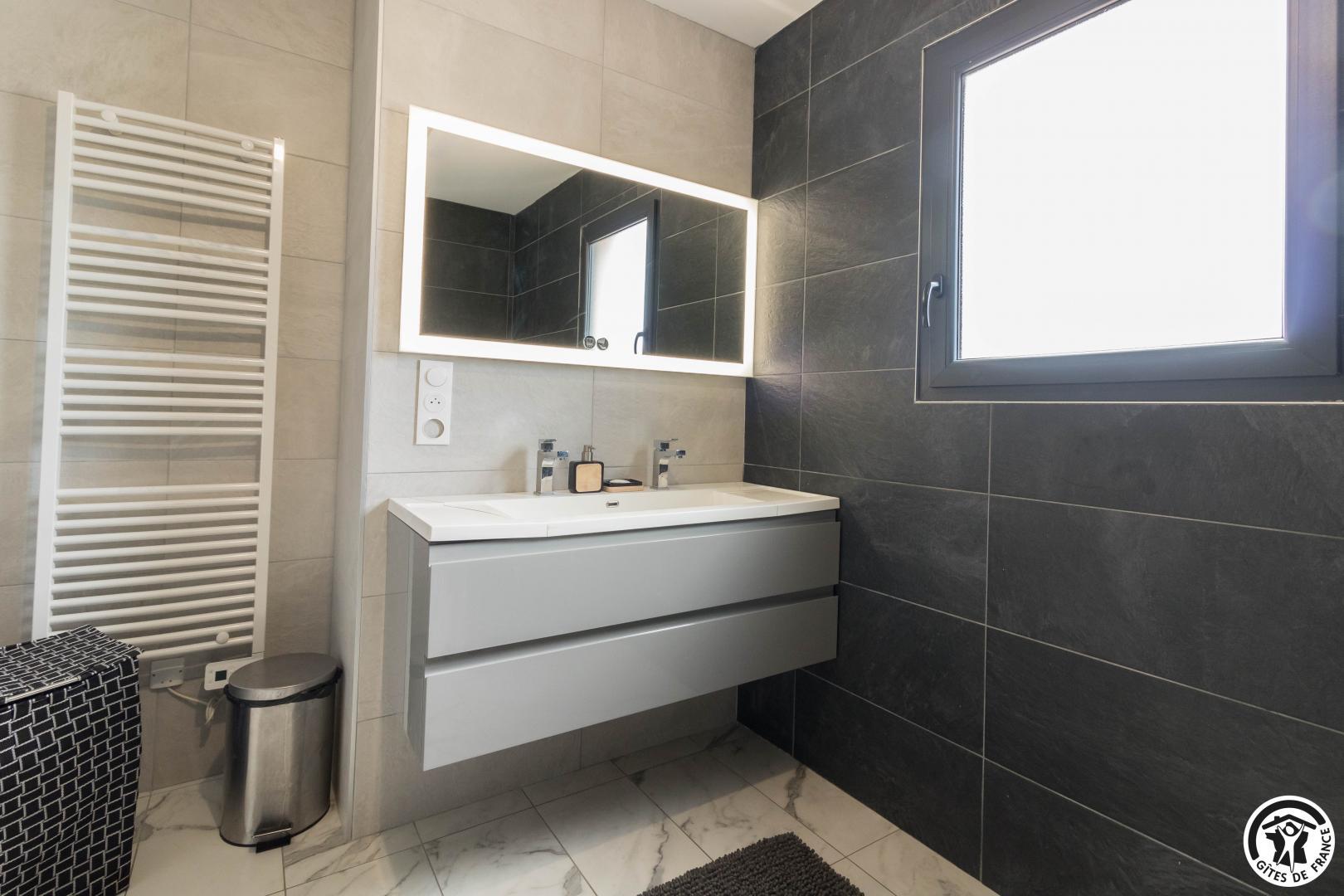 Nabil, the owner, offers you a wellness break in his new, modern house, where you can enjoy a private outdoor swimming pool (4x8m) and spa. You’ll be able to take a break from the pressures of everyday life during your stopover in the charming citadel of Merville. Mr Belguellaoui has made every effort to build a comfortable, well-equipped house. The tiles in the living room are the same as those in the swimming pool, giving you a feeling of infinity.