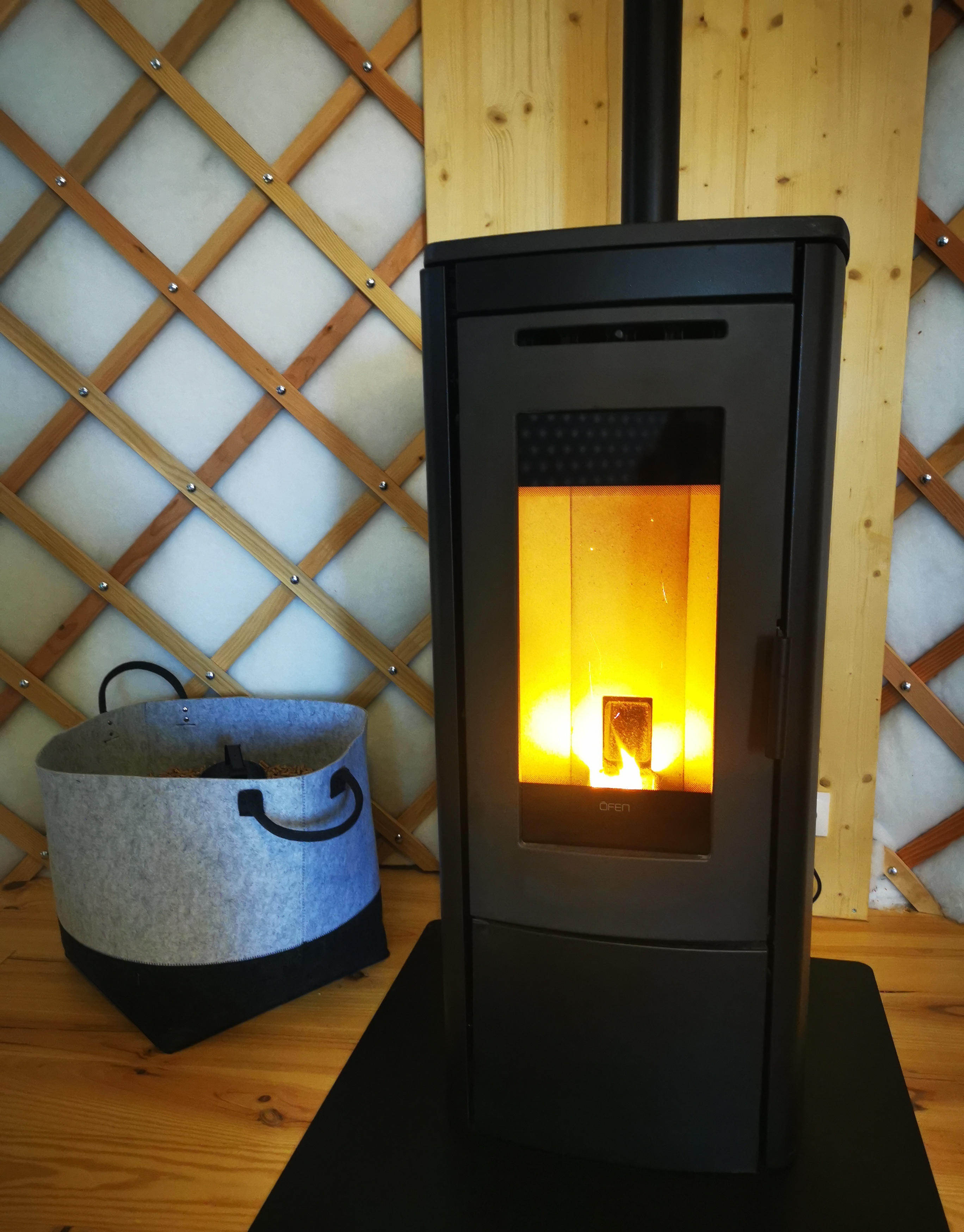 De la lecture vous attend au coin du feu (poêle à granulés).