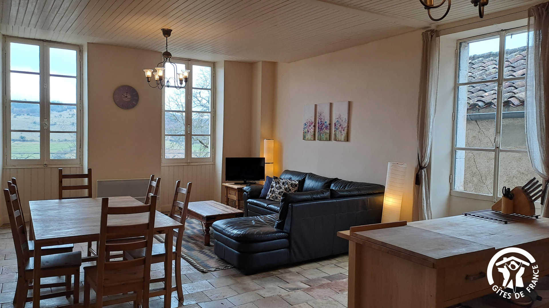 – Chambre 3 : grande chambre avec un lit double en 160, avec une vue dégagée sur la vallée de Laurausse et la campagne environnante.