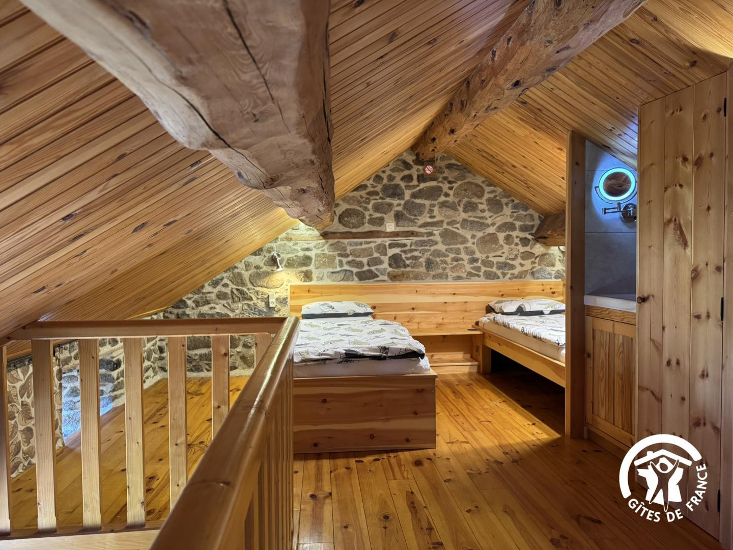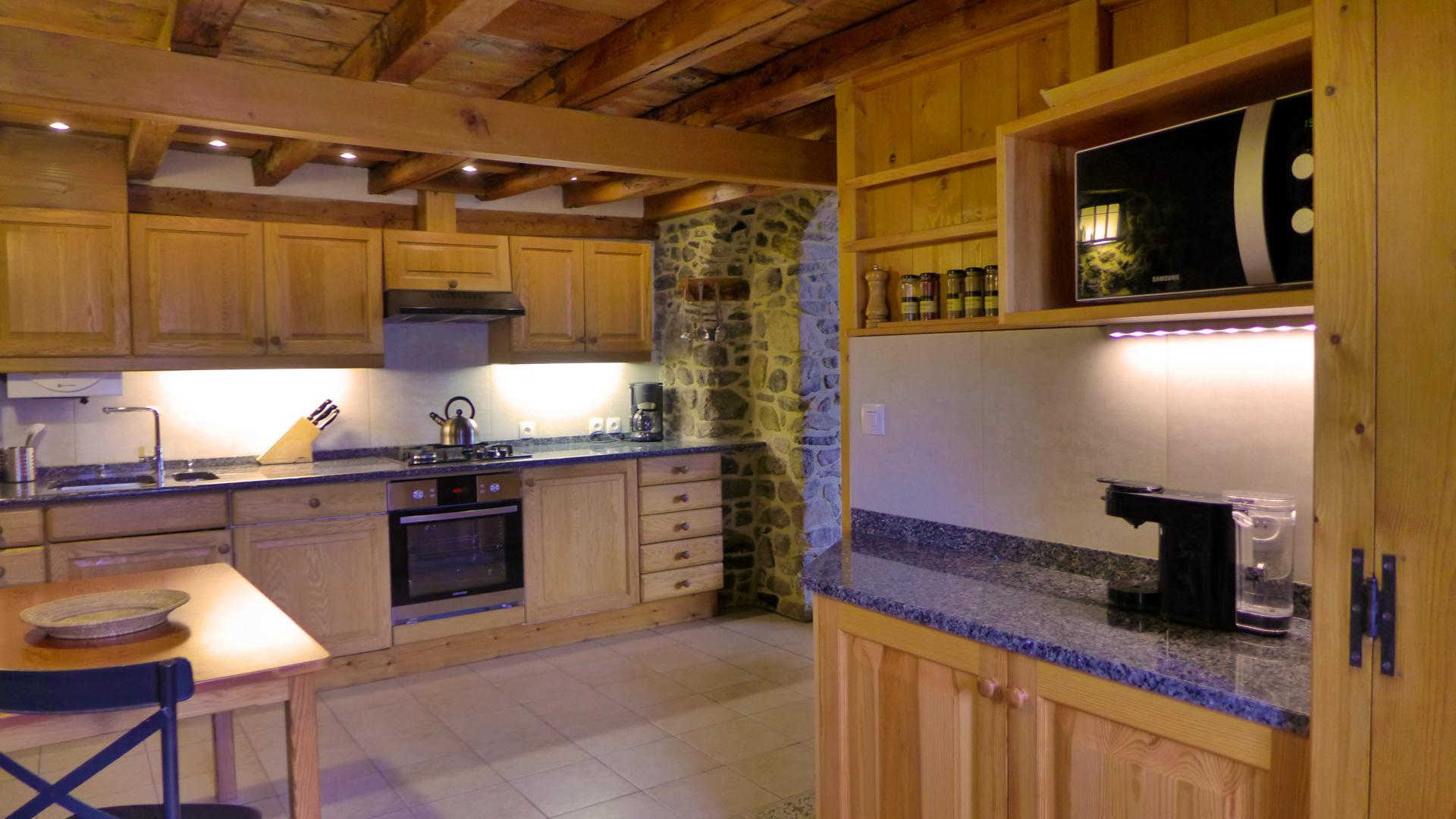 Bienvenue à 1600 mètres d’altitude dans le charmant village de Sauto, pour un séjour authentique, entre nature, détente et activités de montagne. Idéalement situé à quelques minutes des stations de ski de Font-Romeu, Les Angles ou encore Pyrénées 2000, l’endroit est parfait pour les amateurs de sports d’hiver, de randonnées, ou tout simplement de calme et de paysages préservés. A ne pas manquer : une balade à bord du Train jaune, joyau historique et emblème de la région et détendez-vous dans les sources chaudes naturelles de St. Thomas, Llo ou Dorres. Cette grange bénéficie d’une restauration atypique alliant le rustique et contemporain, une conception réalisée par le propriétaire ; artisan constructeur des maisons et bateaux en bois. Depuis le gîte, 3 chemins balisés vous guident vers des estives pastorales, cascades et forêts. Premier étage : – Cuisine – Grand séjour spacieux et lumineux ouvert sur un grand balcon. Chauffage au sol et cheminée. – Salle de garde-manger – Sall