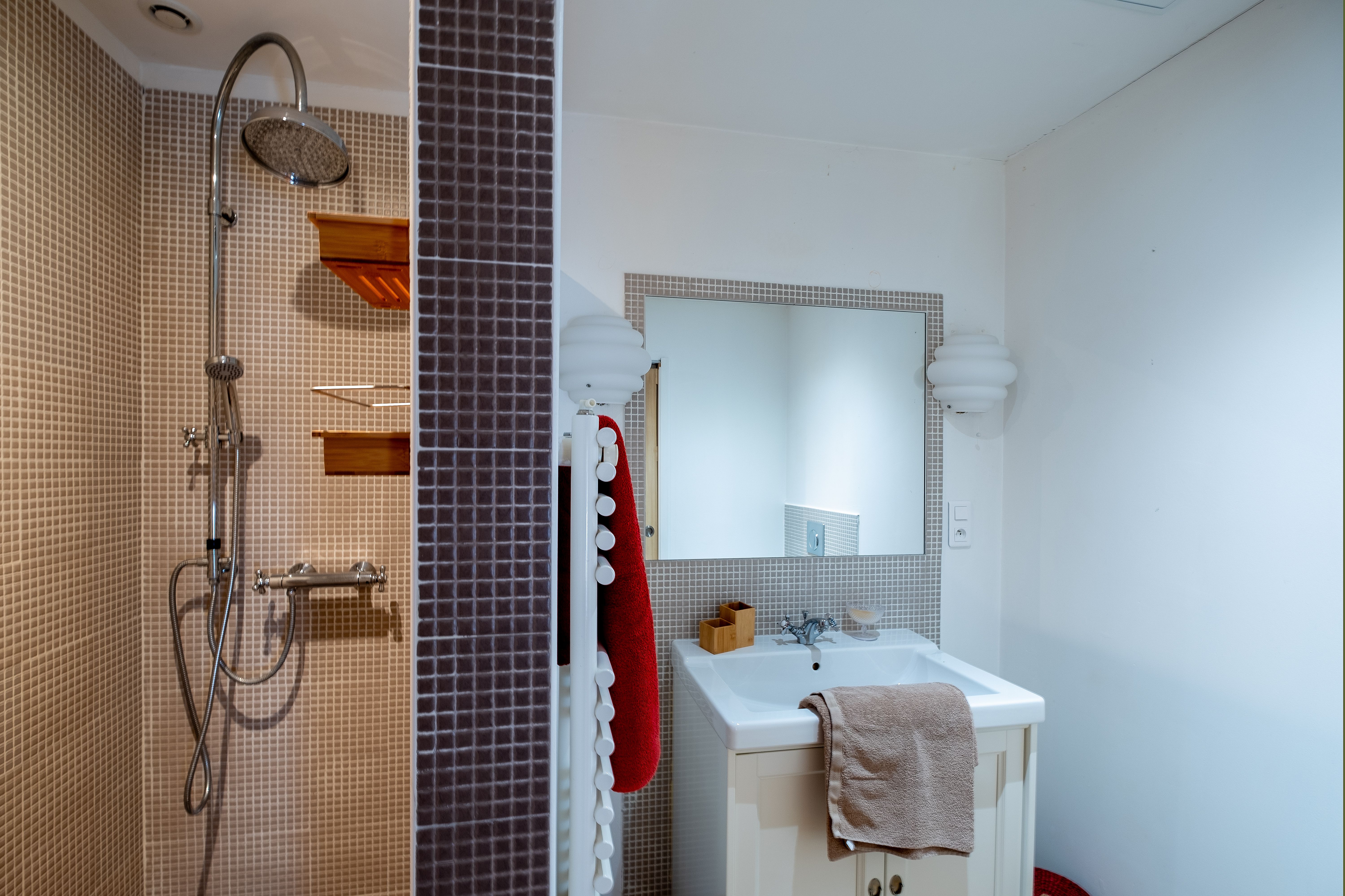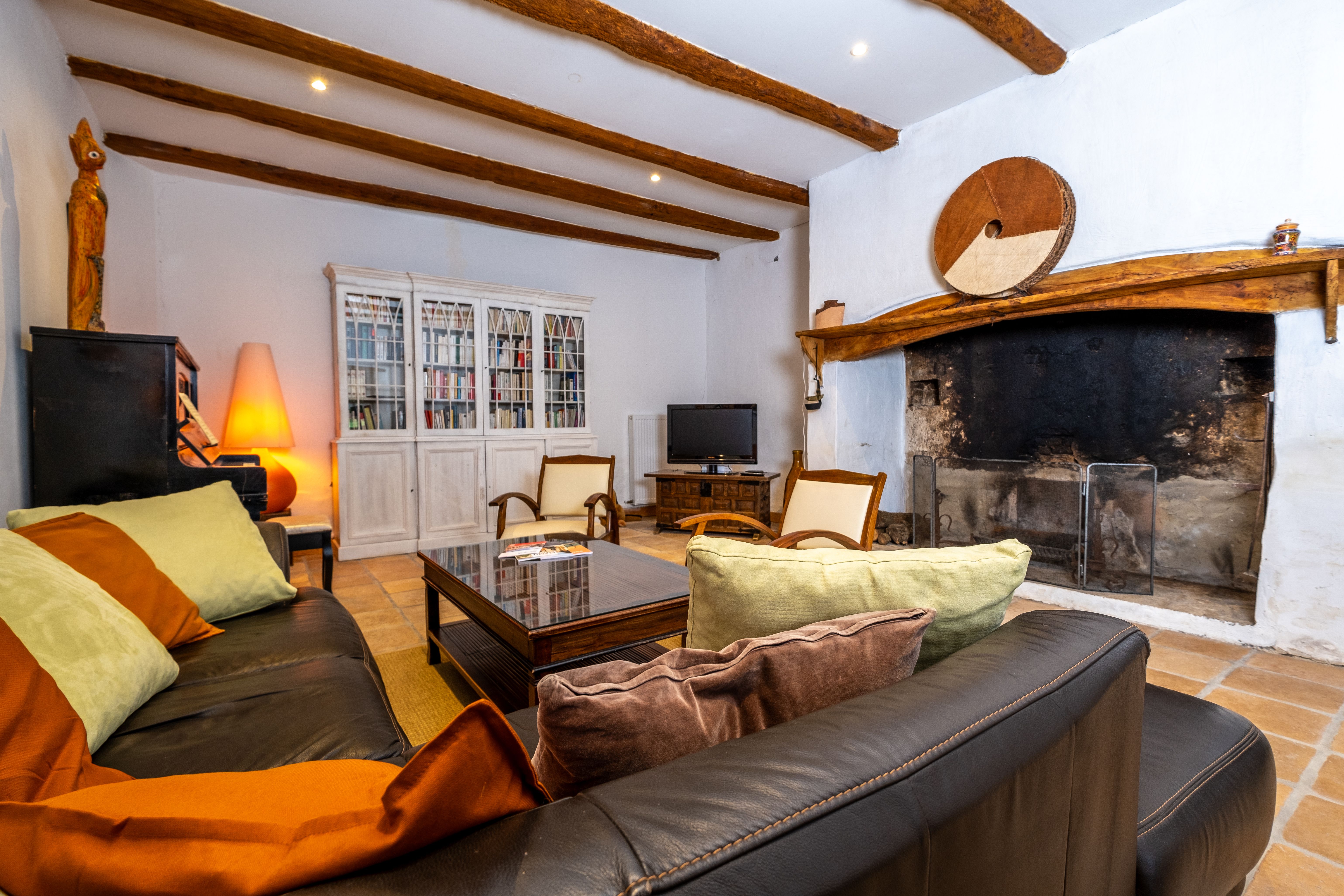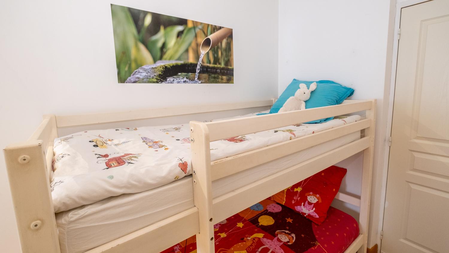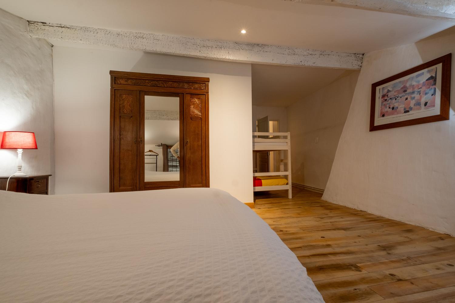 Ground floor: living room with fitted kitchen (dishwasher, washing machine, fridge, freezer, hob, microwave). A sitting room with fireplace and library. 1st floor: one bedroom (1 double bed, 1 single bed) with en-suite shower room and wc, one bedroom (1 double bed, 1 single bed) with en-suite shower room and wc, one bedroom (1 double bed, 1 bunk bed for children or teenagers) with en-suite shower room and wc. Covered terrace, wifi in the accommodation, bed linen and towels included in the price. Enclosed on-site parking. Shared swimming pool (13×6) with electric shutter. Additional wood for half a stere.