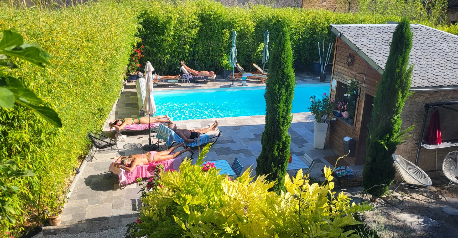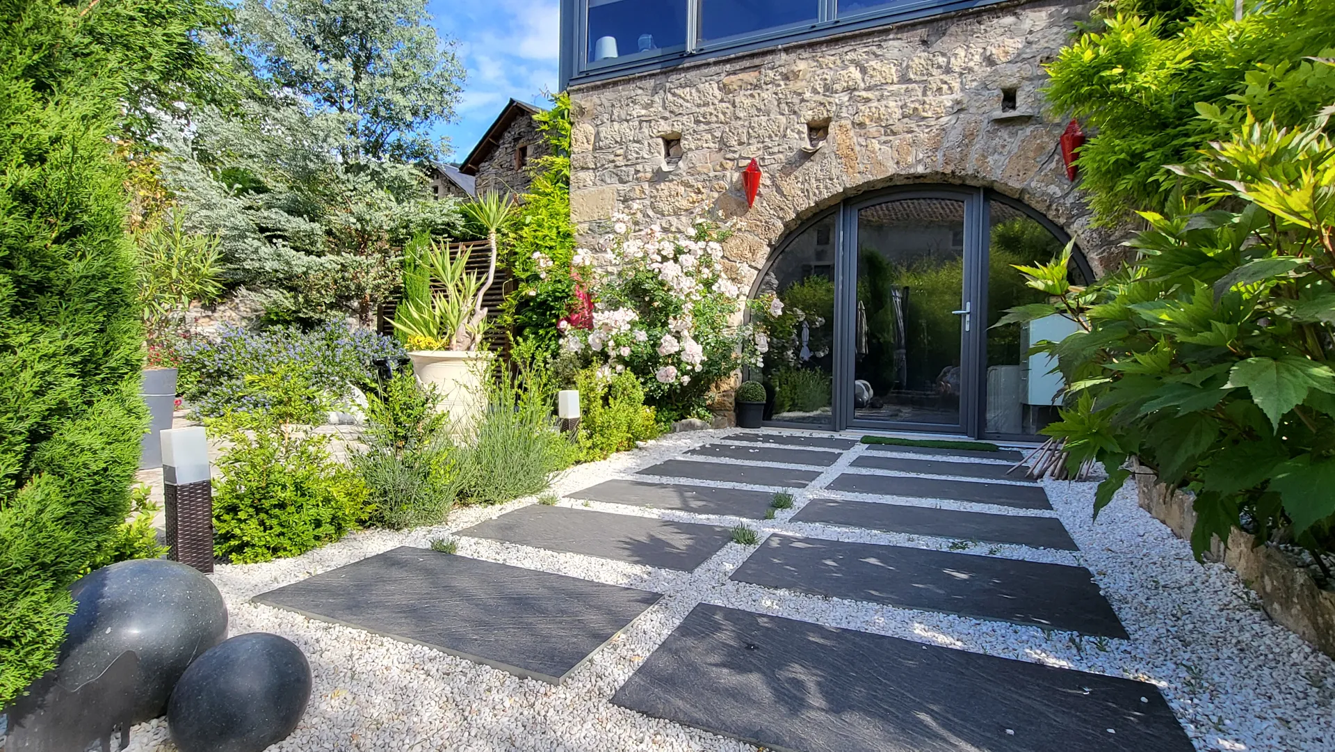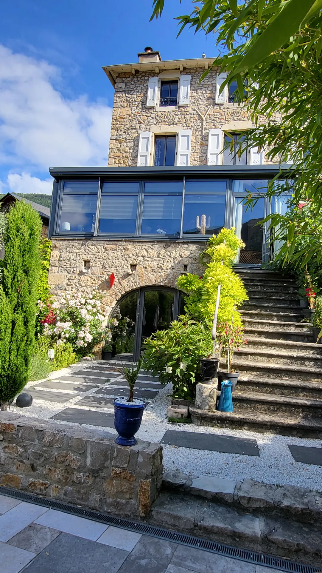 Behind its massive stone facade come and discover five elegant guest rooms with contemporary design. Following beautiful transformations while respecting the authenticity of the place, you will appreciate its vaults converted into a spa, its ornamental garden, its heated swimming pool with jet & waterfall.