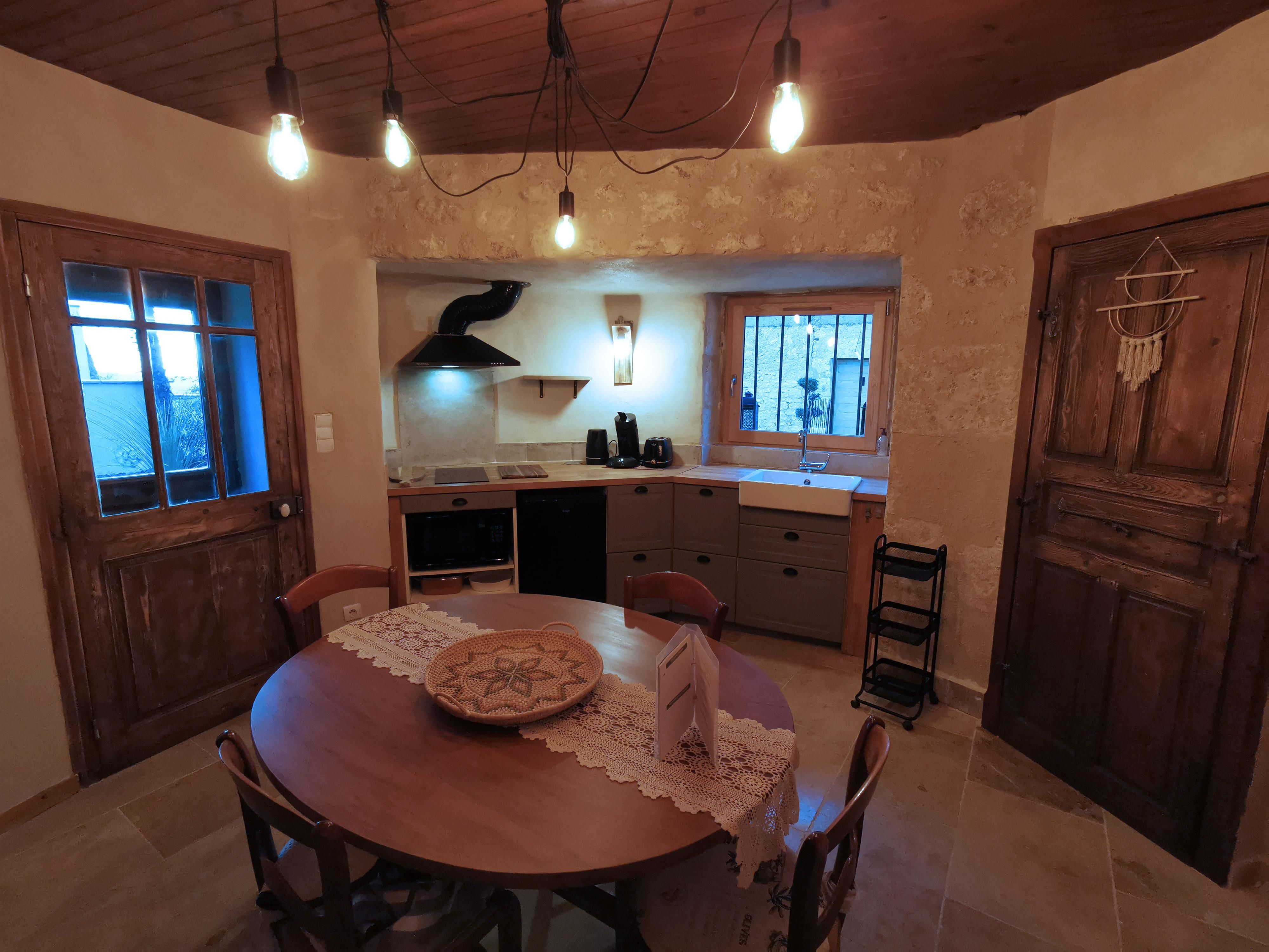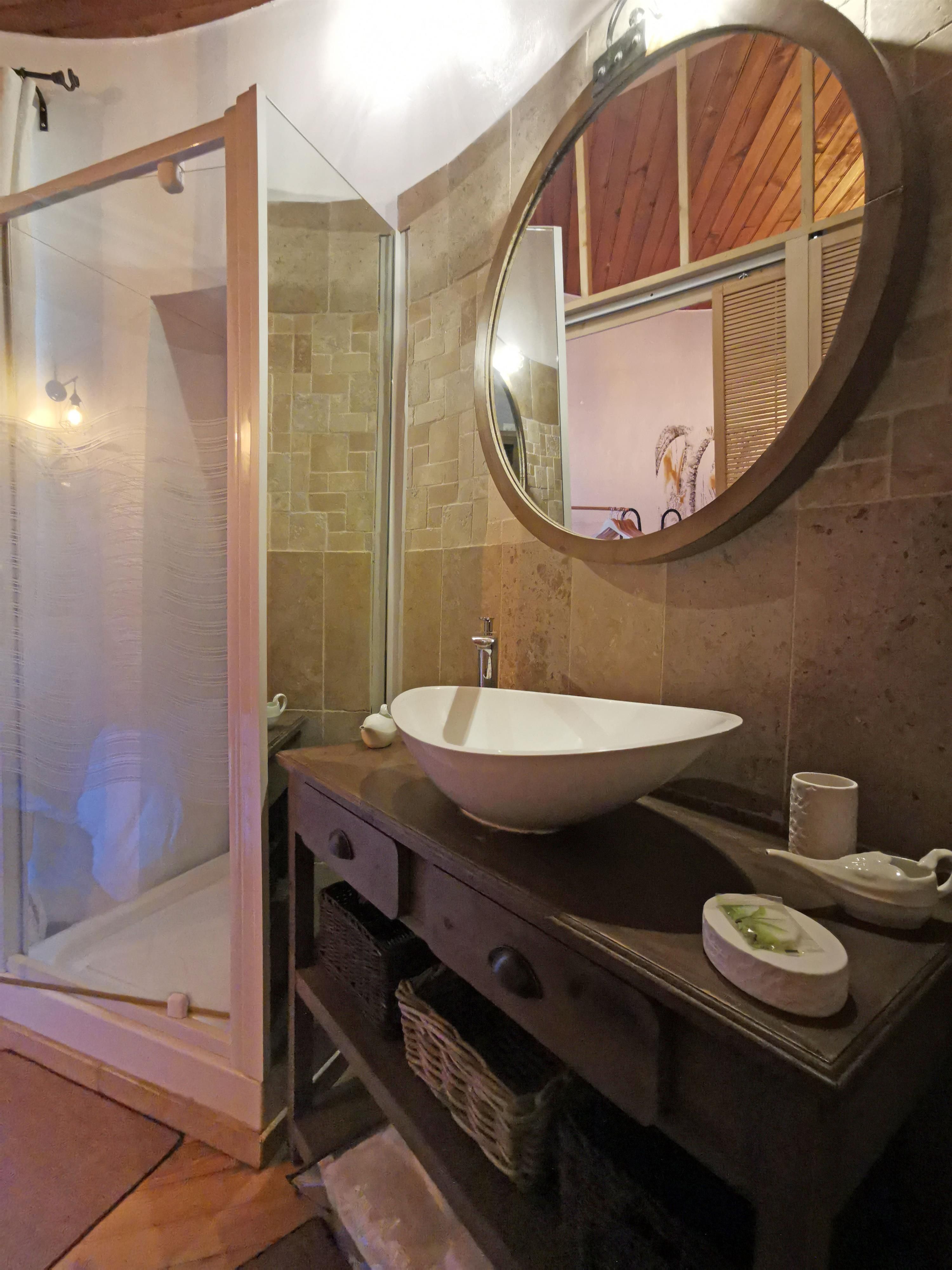 Vous séjournerez dans cet hébergement atypique aménagé pour accueillir jusqu’à 3 adultes. Les propriétaires ont choisi des matériaux et des équipements de qualité pour rénover ce moulin. Le mélange pierres, travertin, bois conserve l’authenticité du lieu.