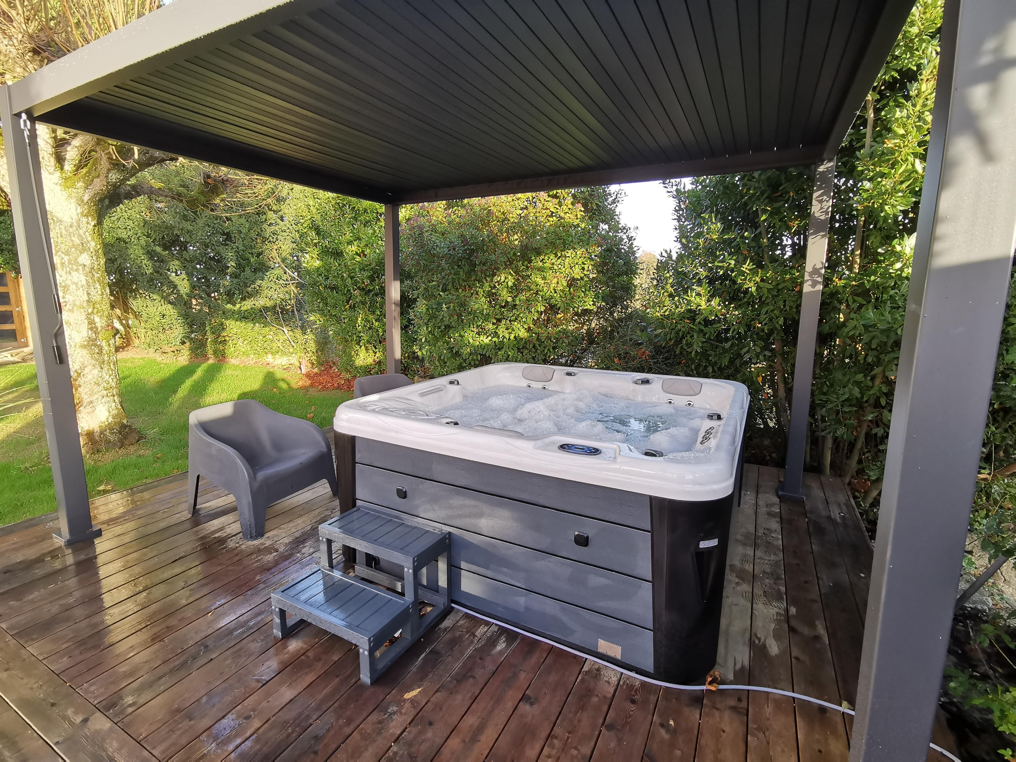 La terrasse en bois attenante à la pergola vous permettra de déjeuner au soleil à la belle saison. Durant votre séjour, vous pourrez également profiter du jacuzzi extérieur mis à votre disposition.