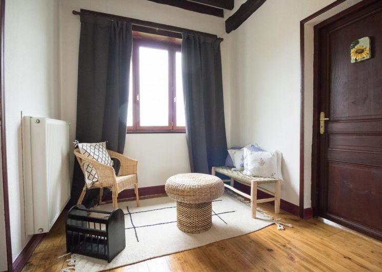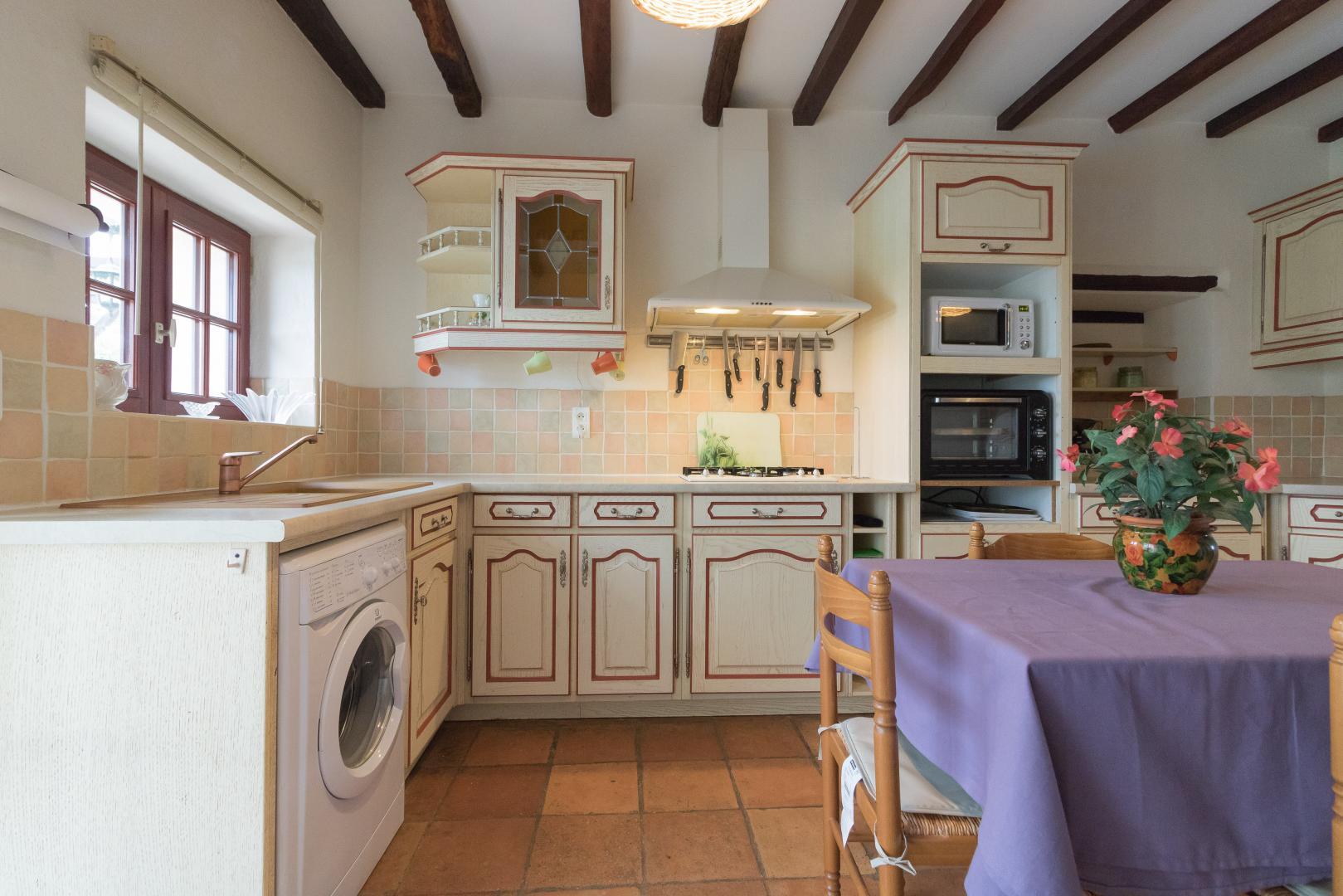 Ground floor: entrance hall, kitchen/dining room, living room, Vigne bedroom (1 x 160cm double bed and 1 x 140cm single bed with en suite bathroom/WC). Upstairs: landing with study area and small relaxation area, reading/games room, small baby room. Chambre familiale Jaune (1 double bed (160cm) and 1 extra bed (140cm) with en-suite bathroom/WC with bath and shower), and Chambre Lavande (1 double bed (160cm) and 1 extra bed (140cm) with en-suite bathroom/WC).