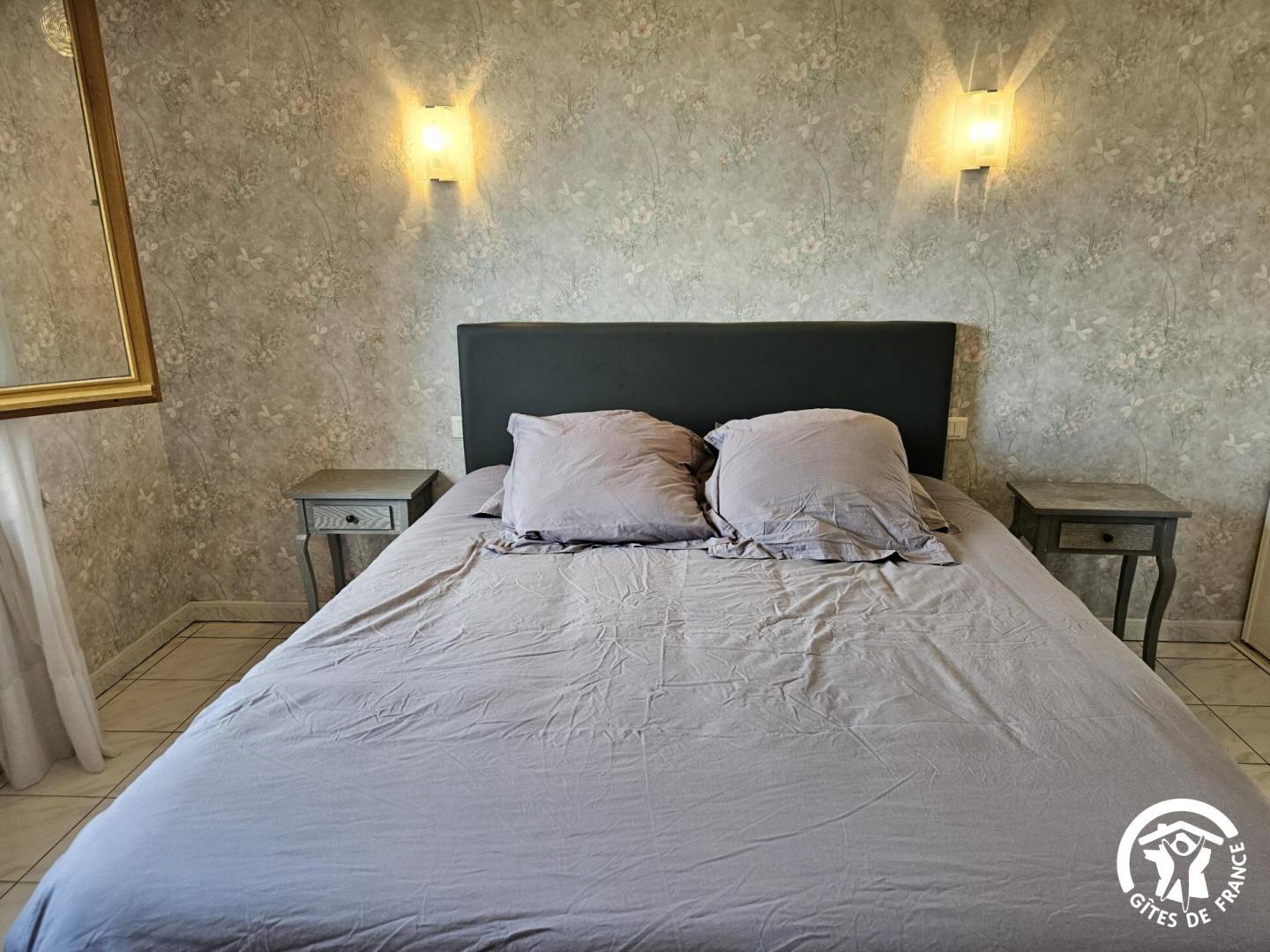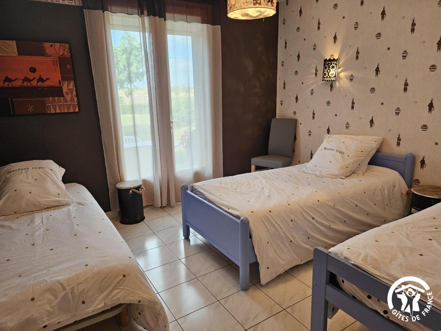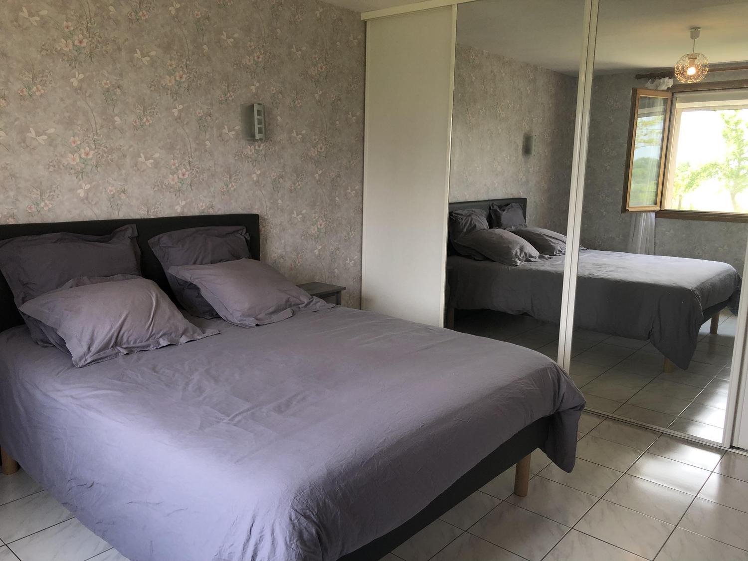 3 chambres : 2 chambres avec lit double en 160x200cm (sommiers et matelas neufs) et grands placards, la troisième avec 2 lits simples en 90x190cm. Il y a 2 chambres qui sont ouvertes directement sur le jardin avec porte-vitrée.