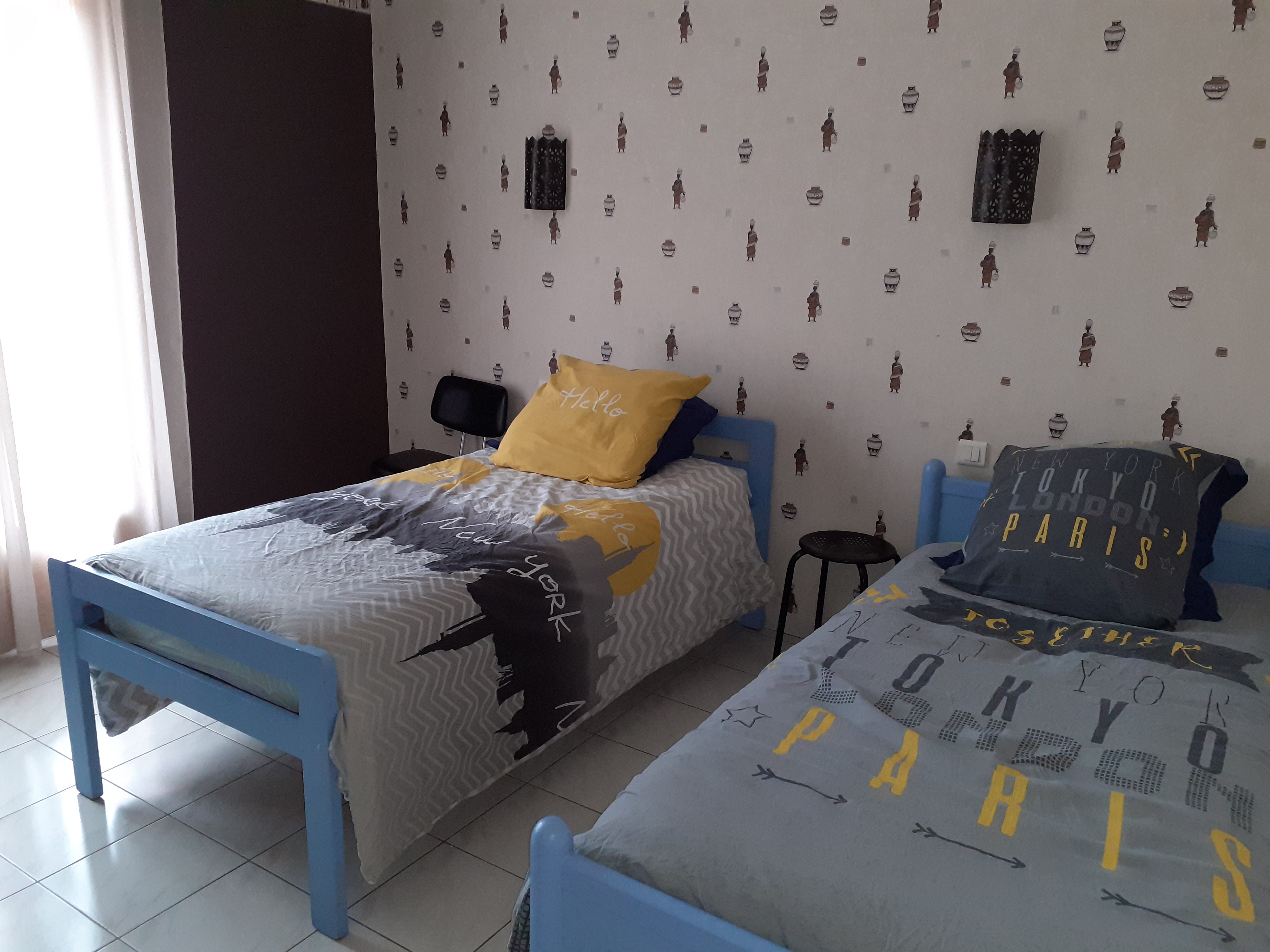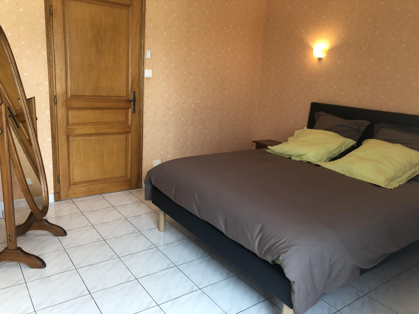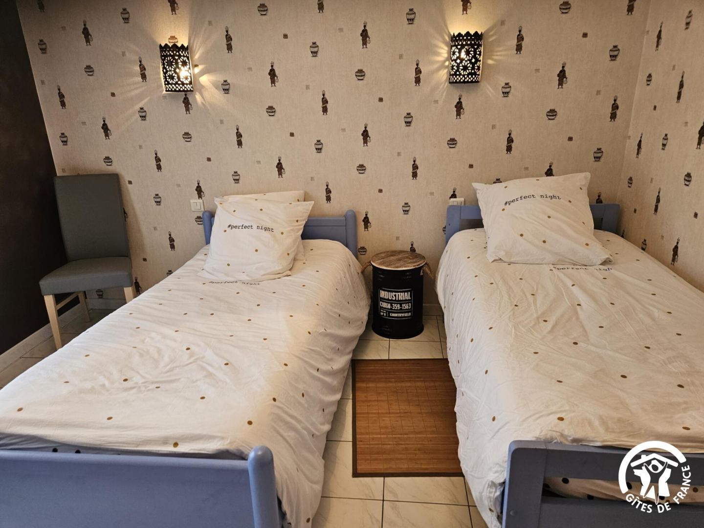 3 chambres : 2 chambres avec lit double en 160x200cm (sommiers et matelas neufs) et grands placards, la troisième avec 2 lits simples en 90x190cm. Il y a 2 chambres qui sont ouvertes directement sur le jardin avec porte-vitrée.
