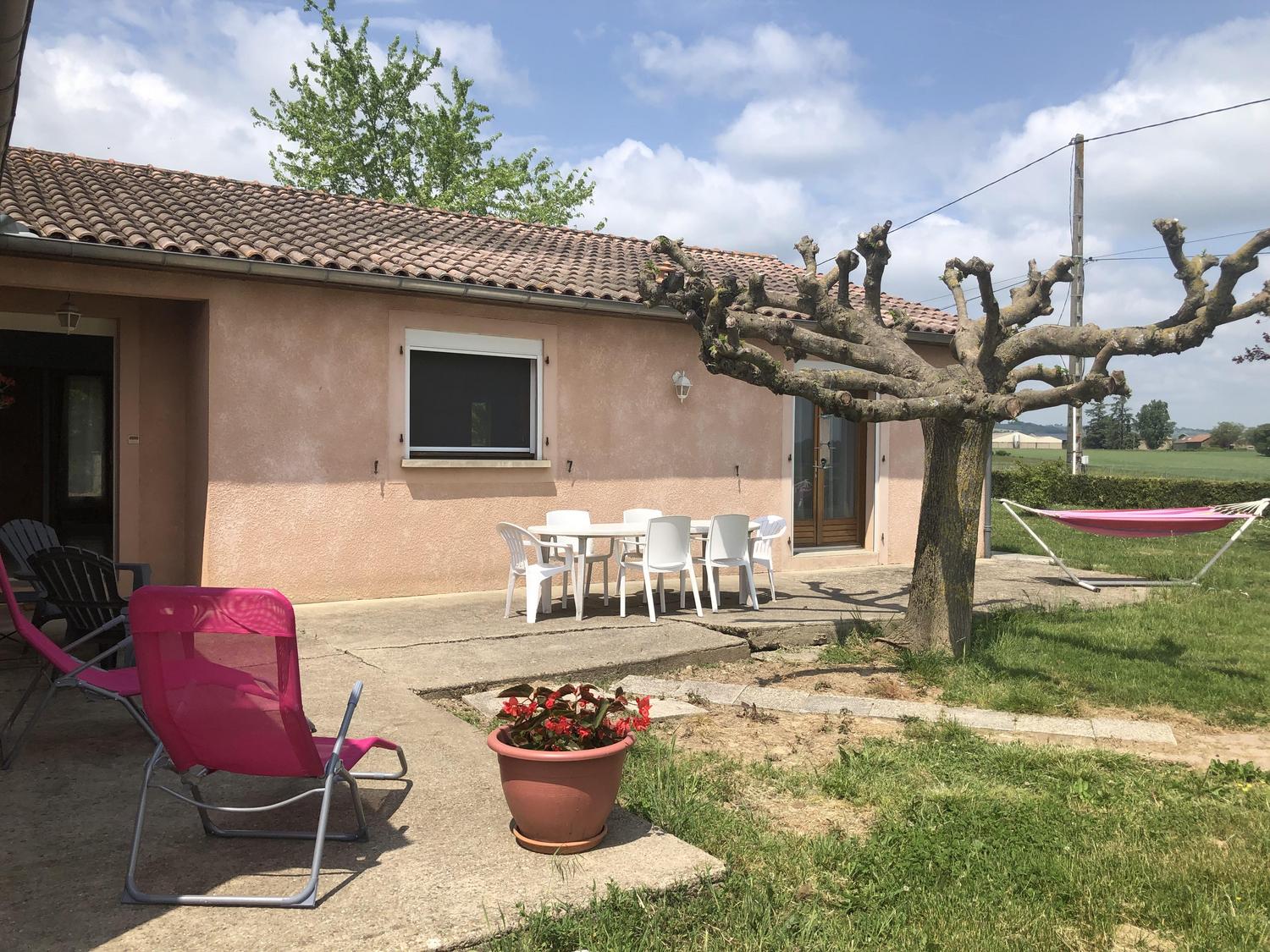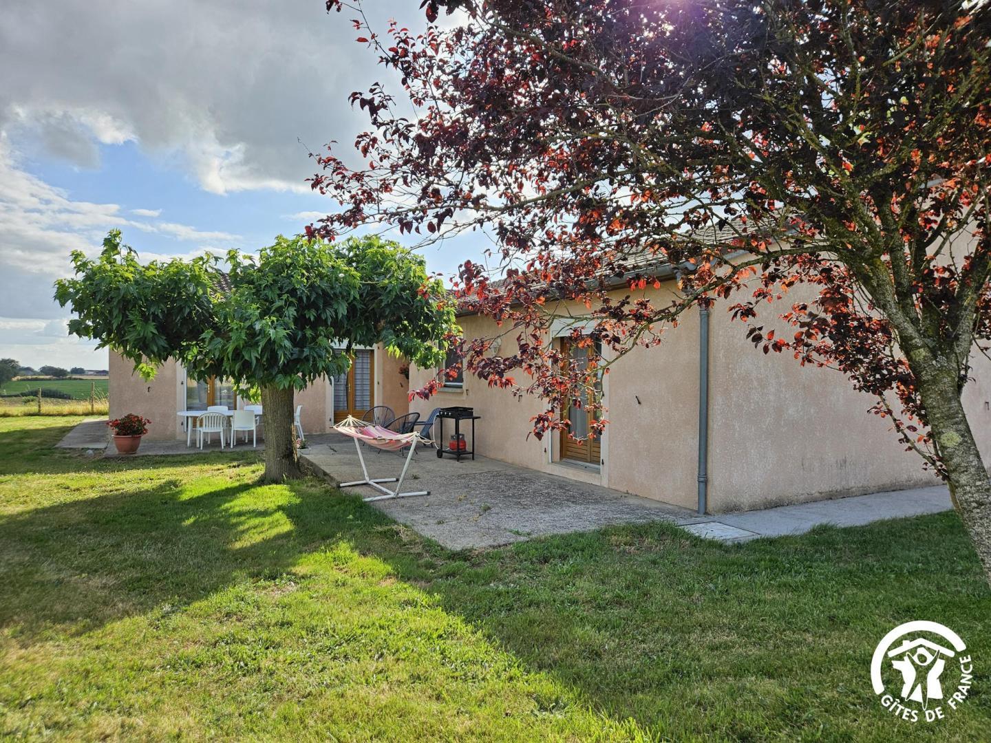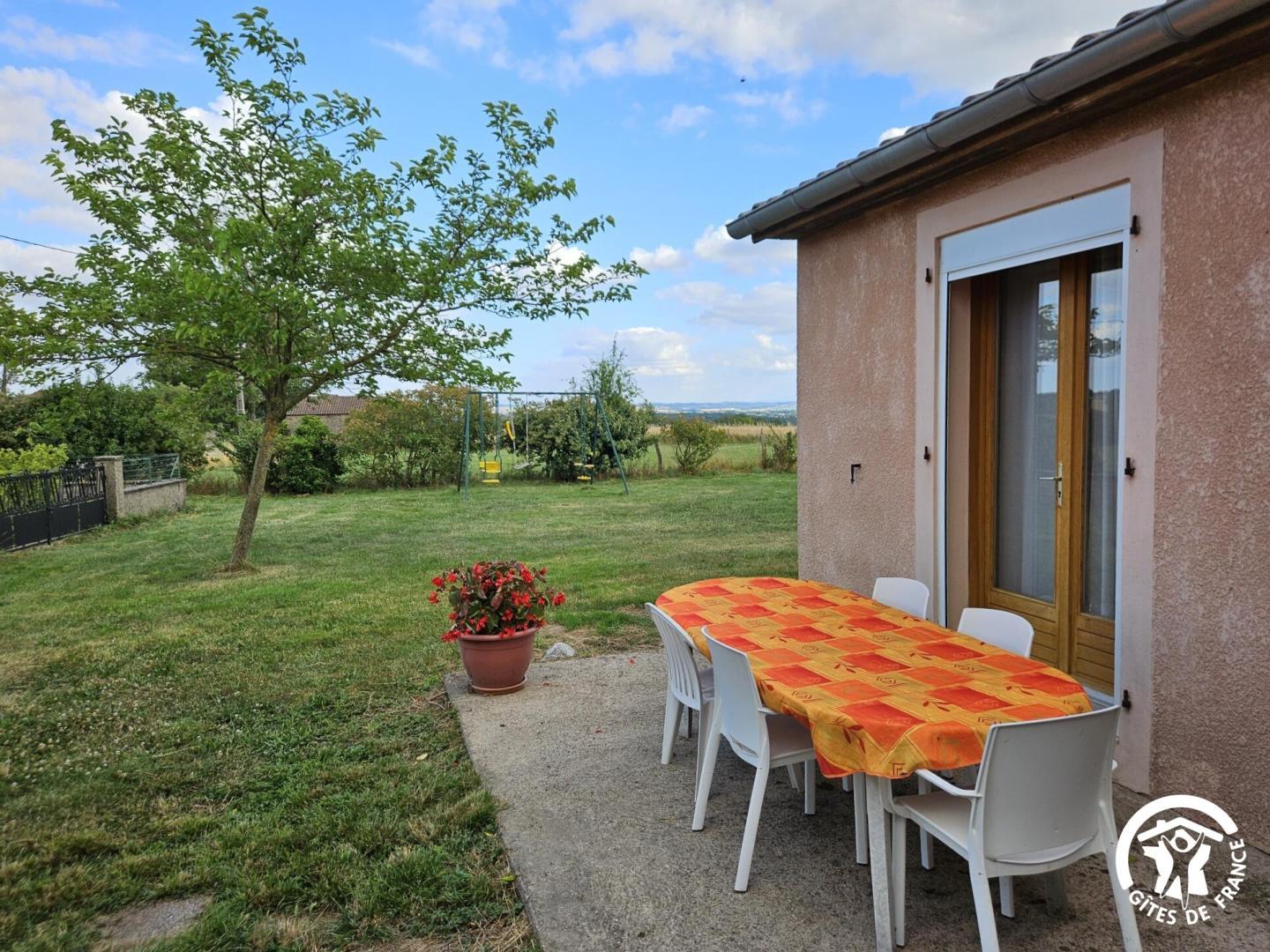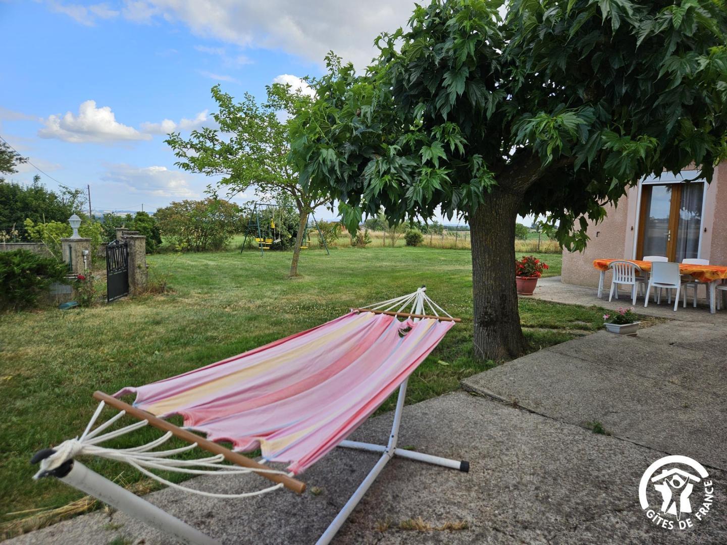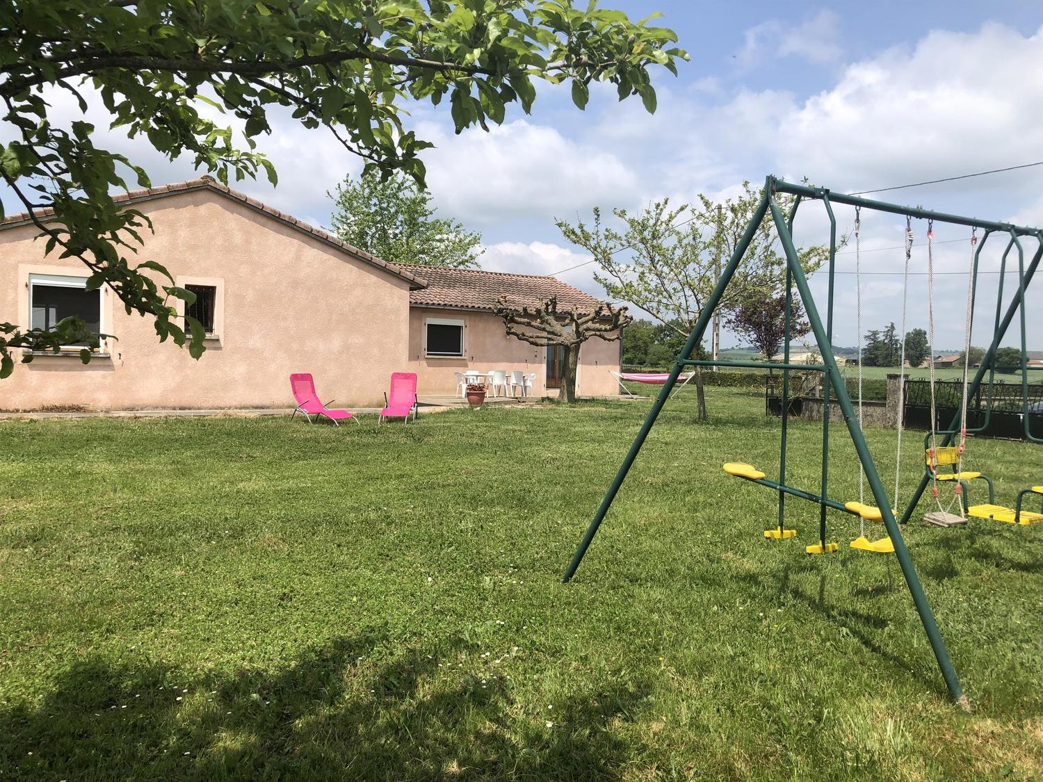 Gîte de plain-pied, sur un grand terrain clos avec balançoire, indépendant, pour 6 personnes. Terrasse très ombragée avec table extérieure, plancha, hamac et bain de soleil.