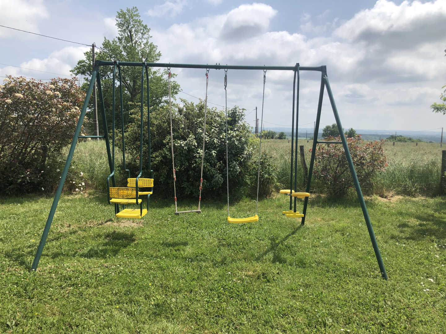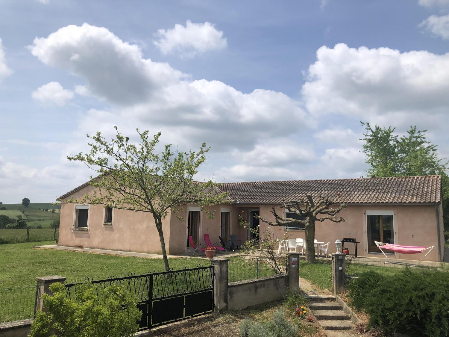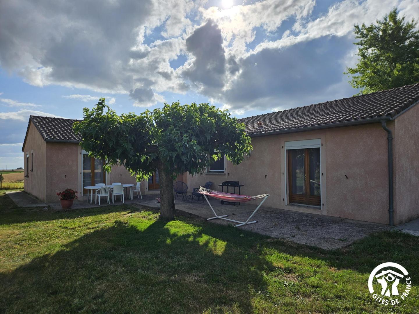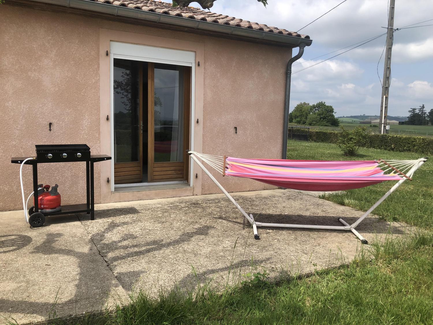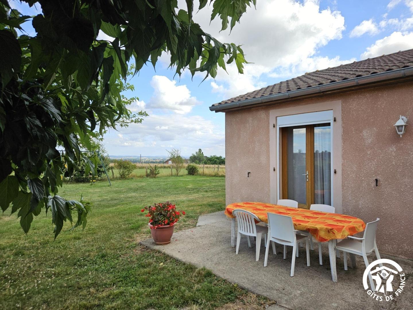 Gîte de plain-pied, sur un grand terrain clos avec balançoire, indépendant, pour 6 personnes. Terrasse très ombragée avec table extérieure, plancha, hamac et bain de soleil.