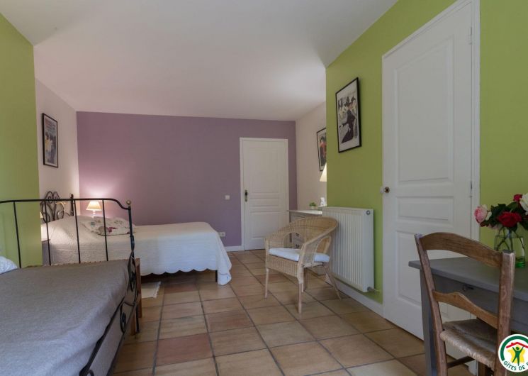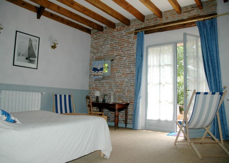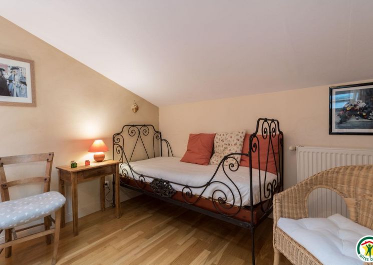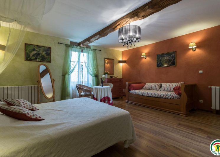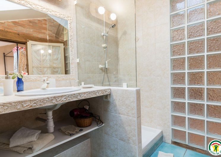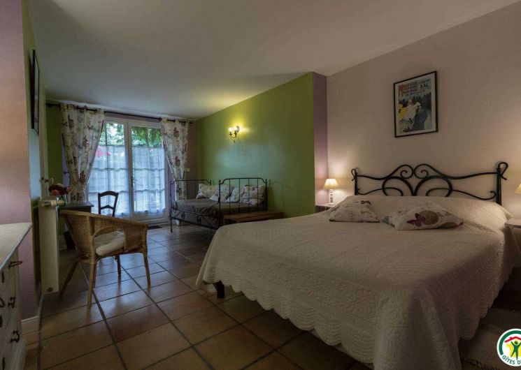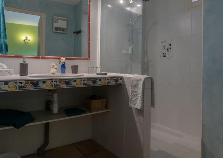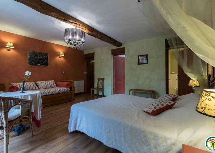 – First floor: “Venise” room with sloping ceilings (1 canopied 140cm double bed + 1 90cm single bed + bathroom, shower and WC).