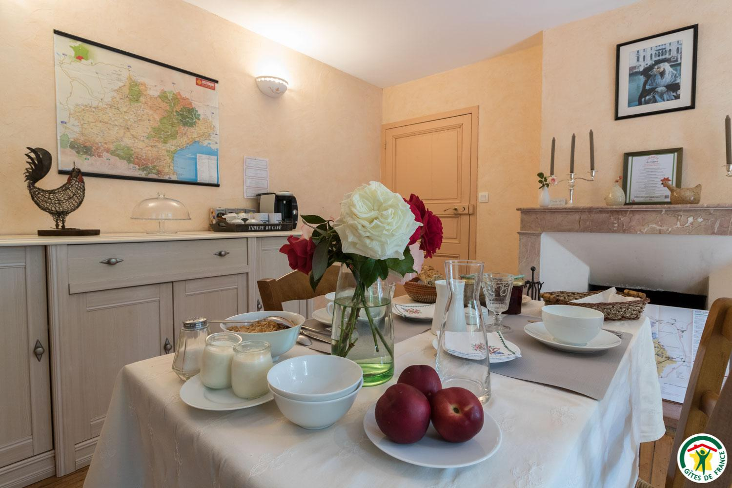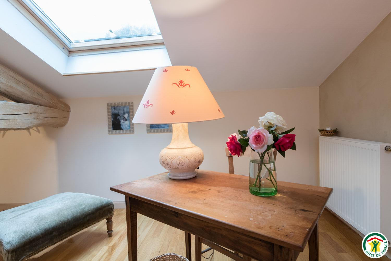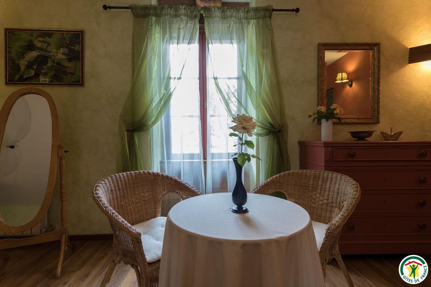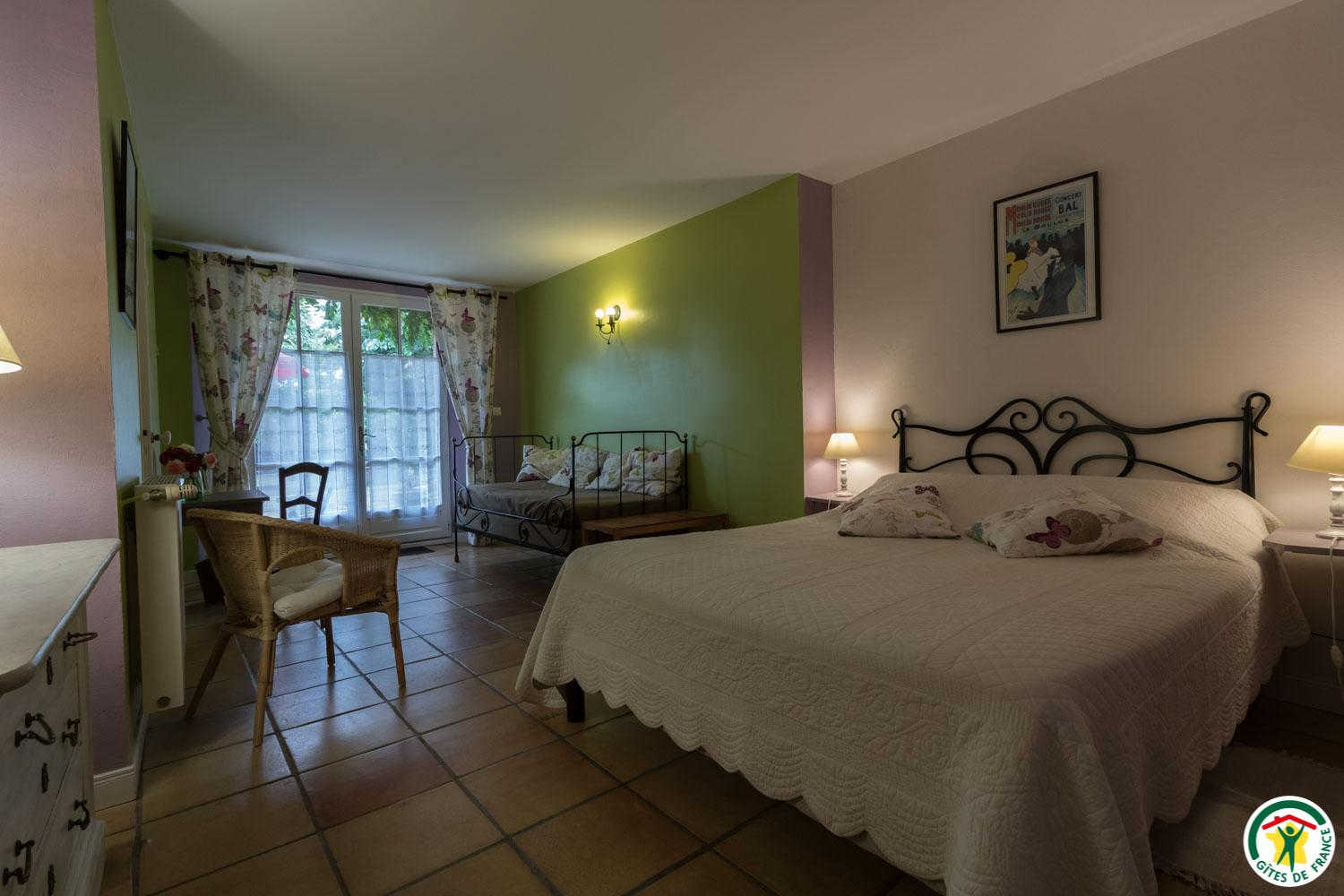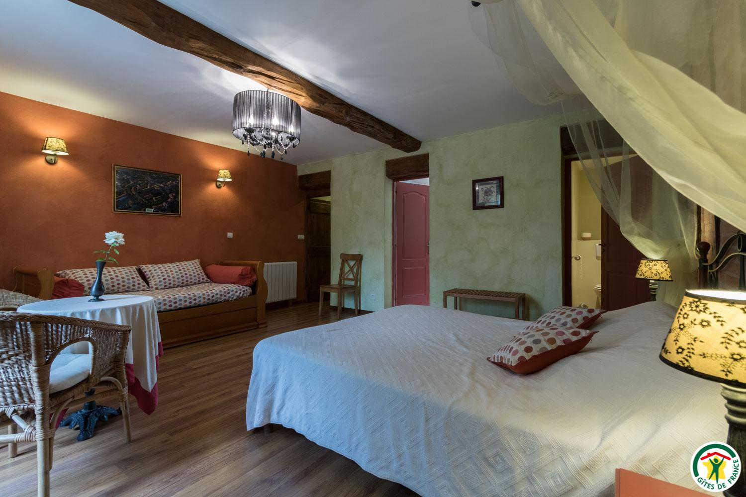 – First floor: “Venise” room with sloping ceilings (1 canopied 140cm double bed + 1 90cm single bed + bathroom, shower and WC).