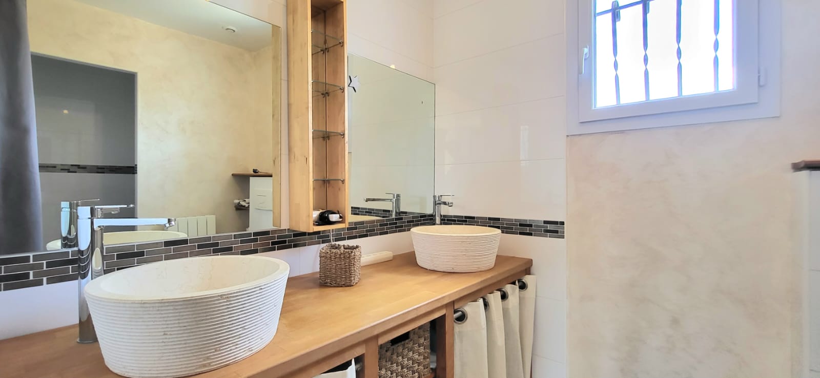 3 Chambres dont 2 au rez-de-chaussée, 2 salles d’eau, 2 WC dont 1 indépendant (au rdc). 2 chambres avec des lits en 160, et 1 chambre avec 2 lits en 90.