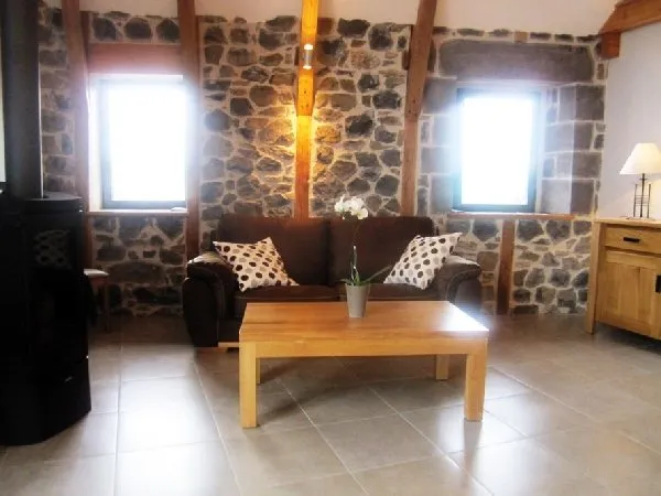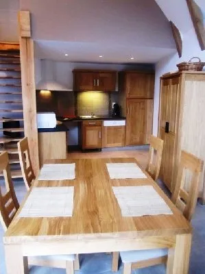 Gîte on 2 levels in a small village and semi-detached with an other gîte: 2 bedrooms (1 double bed and 2 single). Bathroom, fully-equipped kitchen, living room with a wood stove /fireplace. Central heating. Private terrace. Garden furniture + Barbecue on display. Linens supplied + beds made on your arrival.