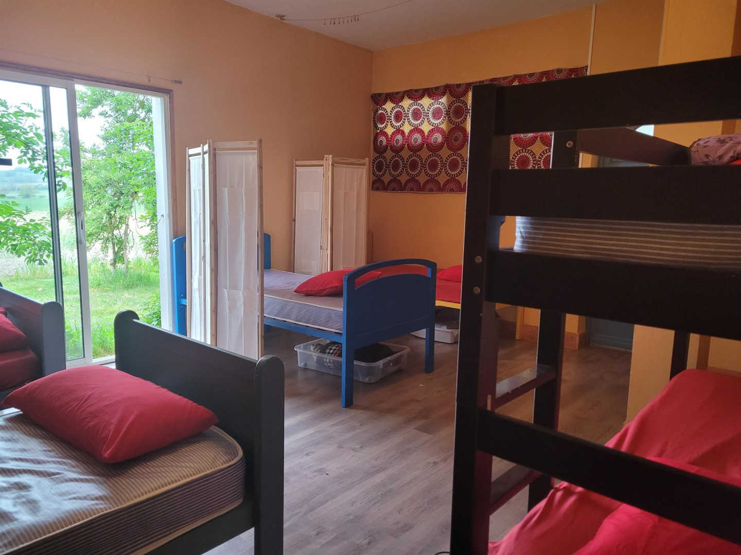 Gîte for groups for 18 persons, set up in former agricultural buildings, in two parts. Large dining-rm looking out on a fully equipped kitchen in one building, and 3 bdrms with 6 places(bds 3ft x 6ft2 whereof some bunk bds) + washing facilities + lounge corner in another building. Terraces. 3 showers and washbasins, 2 wc, washing machine. Fully equipped kitchen( dishwasher, fridge, freezer, 5-burners large cooker, oven, micro-w.). Receptions and party venues in the dining-rm + available at extra charge : the large fully equipped hall. In a former agricultural farm, surrounded by hilly fields and meadows, quite close to Albi and Gaillac, the Hangars de Piol welcome you to a peaceful and restful place, ideal to get invigorated among friends, and just enjoy the countryside. It is in this haven of peace that the association Atout Piol has settled down a few years ago, developing on site a genuine centre of cultural and artistic activities, all about dancing. The particular feature of this place is the large hall with its 160 sqm dance floor. In utter simplicity, all types of stays can be considered, propitious to tranquillity and conviviality : party days or evenings, family get-togethers, association meetings, professional meetings, residential training sessions(cultural, artistic, sportive), children’s stays, adapted holiday stays, and other stay packages to set up with the team.