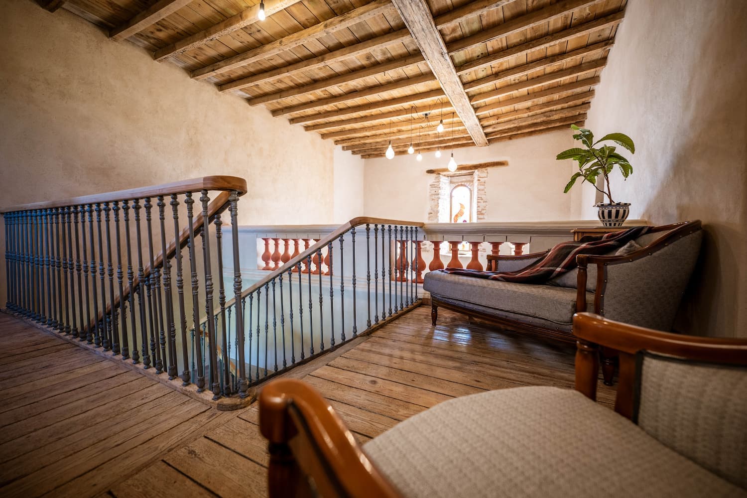 Un salon est aménagé dans la pièce principale qui est une ancienne chapelle. Sur la mezzanine vous trouverez le coin lecture avec sa bibliothèque.