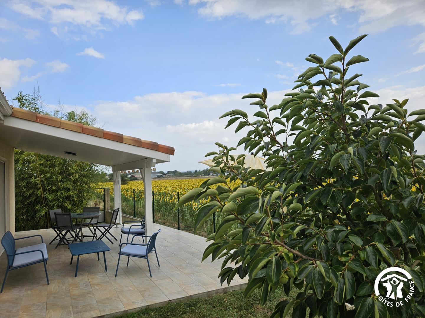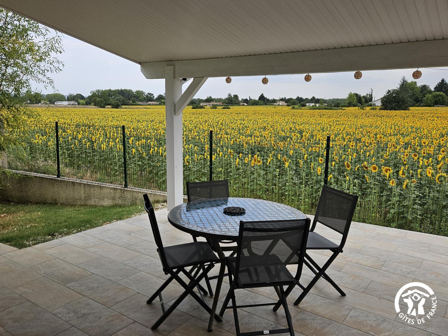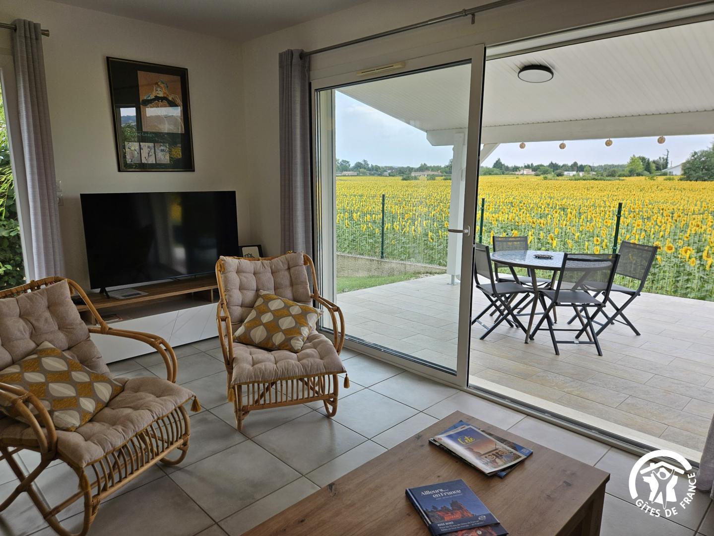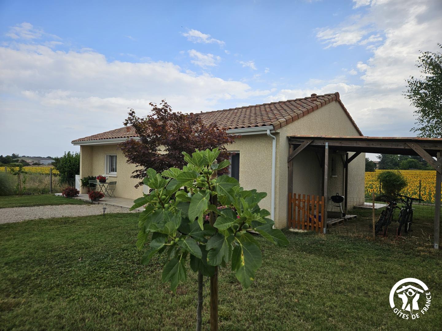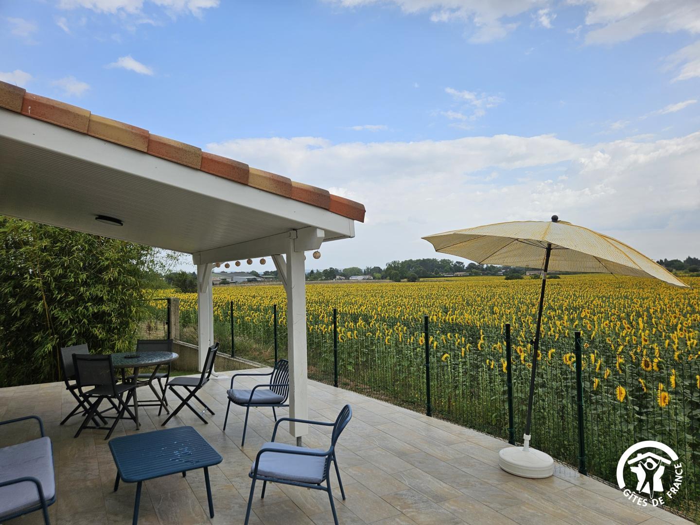 Jardin clôturé et terrasse privatifs, pas de vis-à-vis, vue sur le champ derrière et les coteaux gaillacois. Salon de jardin, barbecue.