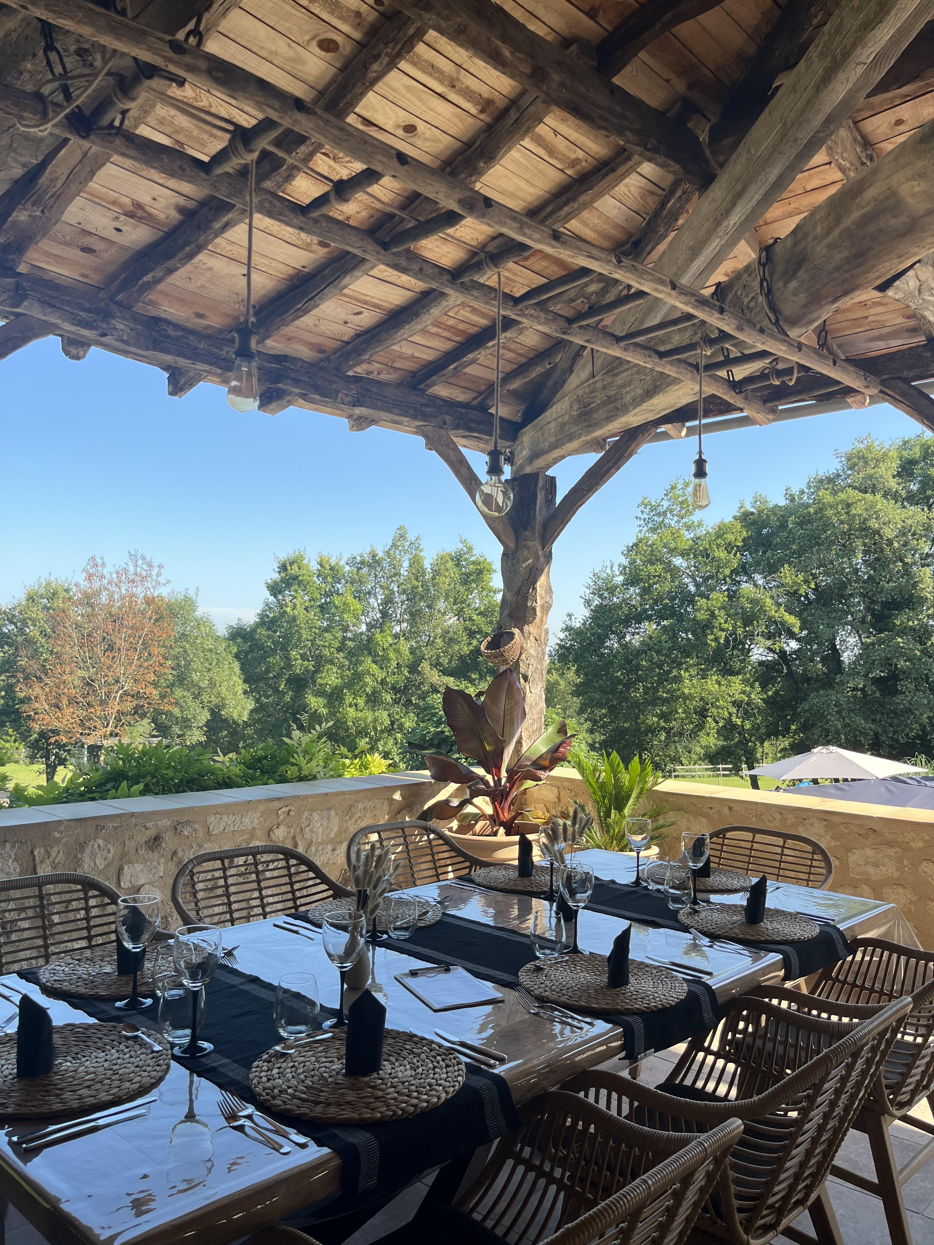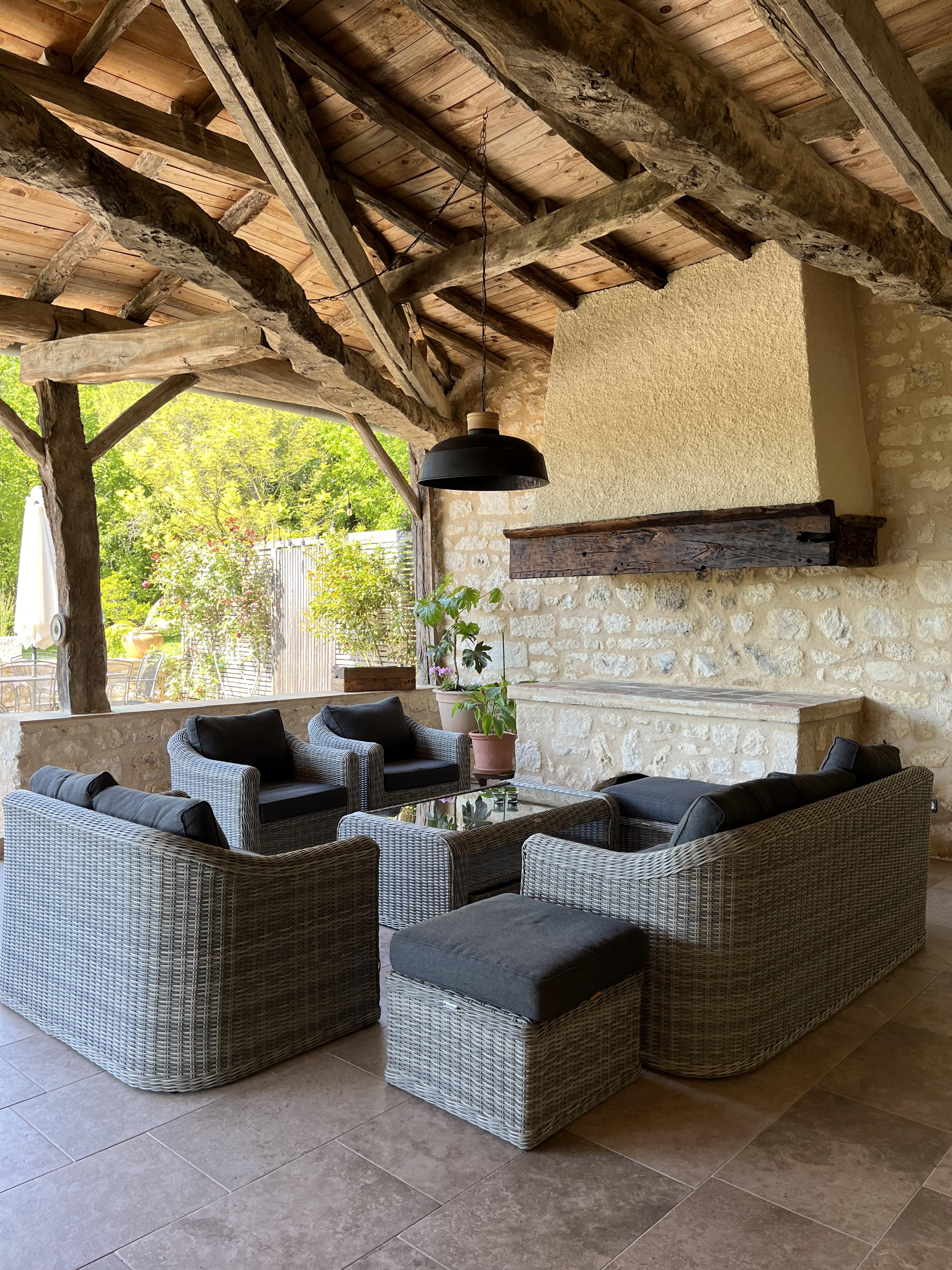 La Boissière, old renovated wine farm, all white limestone, surrounded by over 7 acres of woods and meadows (large garden, trampoline, badminton). The estate adjoins the small village of Andillac with its typical Tarn dovecote. A stone's throw away is the Château Musée du Cayla, the birthplace of the writers Maurice and Eugénie de Guérin. The Boissière with the privileged situation, in the “golden triangle” composed of Albi (episcopal city classified with the world inheritance of Unesco,) of Cordes-sur-Ciel (medieval city millenium) and Gaillac makes it possible to easily visit the country with many vineyards and beautiful country houses, to walk the picturesque hiking trails, the bike Tarn … The large covered terrace to the south is the central square of our area, overlooking the large salt pool and spa, facing the woods. You can enjoy the morning sunrise on one side and the evening on the other side, the sunset behind the box trees and umbrella pines …