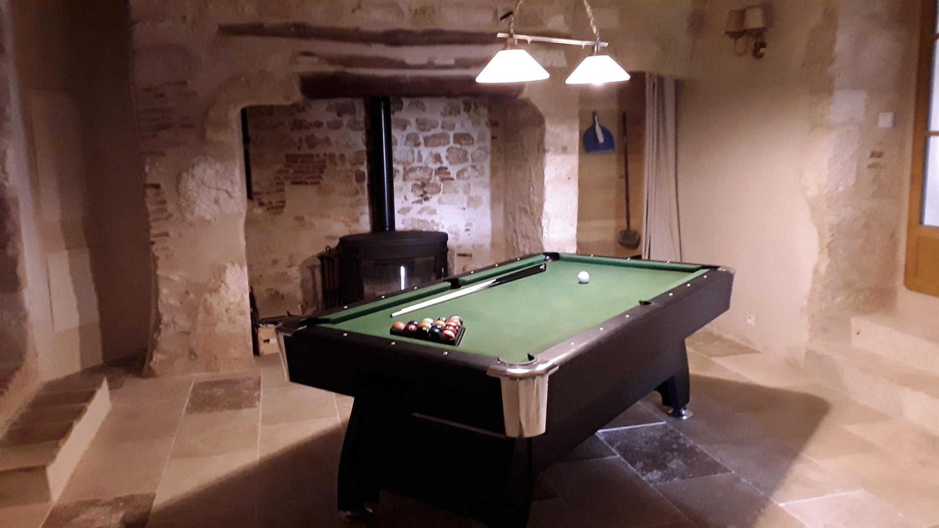 – Rez-de-chaussée : cuisine avec salle à manger, salon avec billard américain, poêle à bois. Cuisine équipée d’une lave-linge, lave-vaisselle, cafetière à filtre, grille-pain, bouilloire, micro-ondes, réfrigérateur avec congélateur et piano de cuisson avec four.