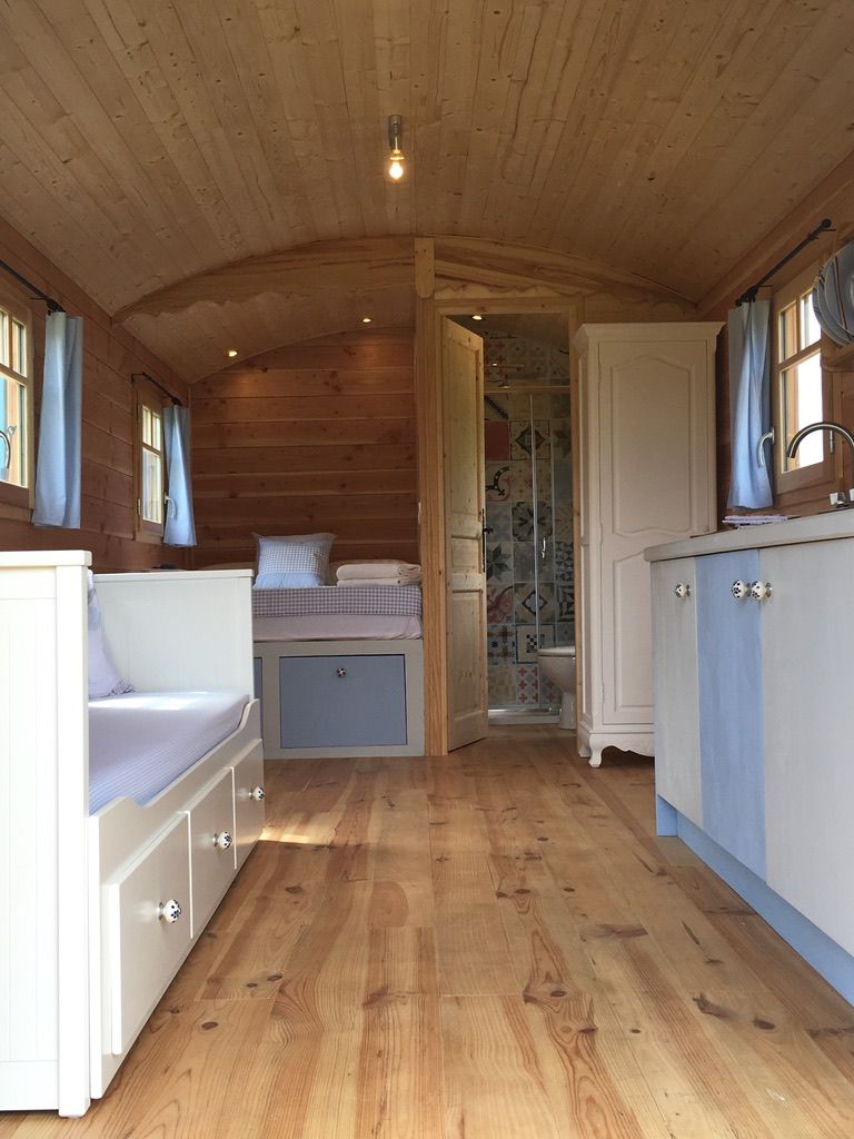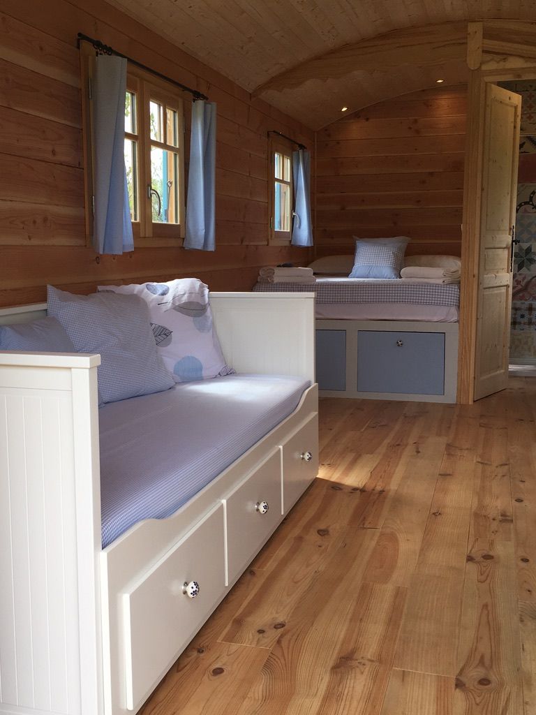 Chacun a été soigneusement fini et comprend une terrasse privée pour les repas à l’extérieur avec l’utilisation d’un barbecue à charbon Webber. À l’intérieur, vous trouverez une cuisine compacte et bien équipée ainsi qu’une salle de douche avec WC à chasse d’eau. Il y a un lit confortable de style roulotte traditionnel avec un espace de rangement en dessous.