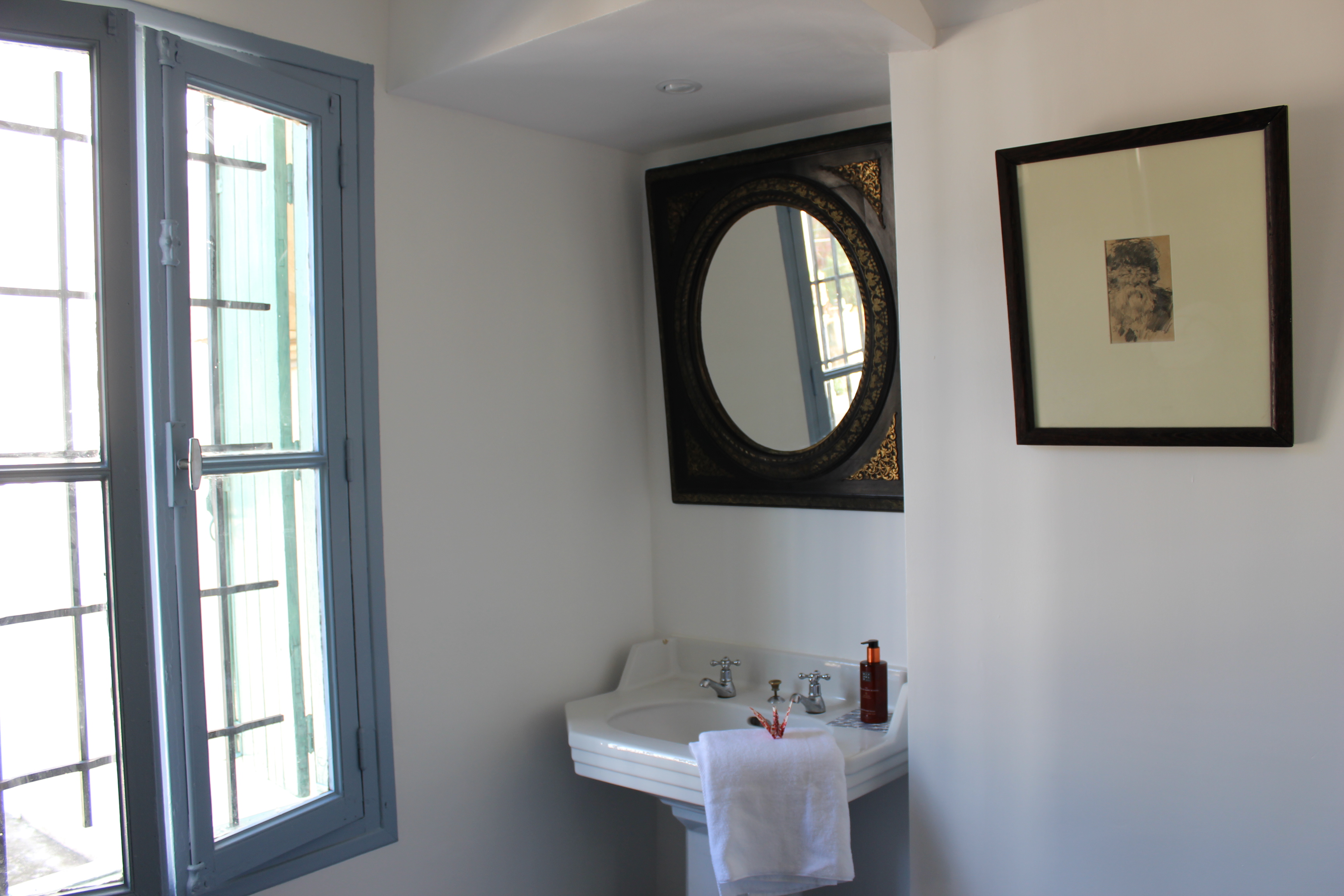 Ein 31m² großes Zimmer mit seinem kleinen halbprivaten Garten und Badezimmer, italienischer Dusche, privatem WC, Pflegeraum. Eine Oase der Ruhe mit nüchternem und intimem Dekor.