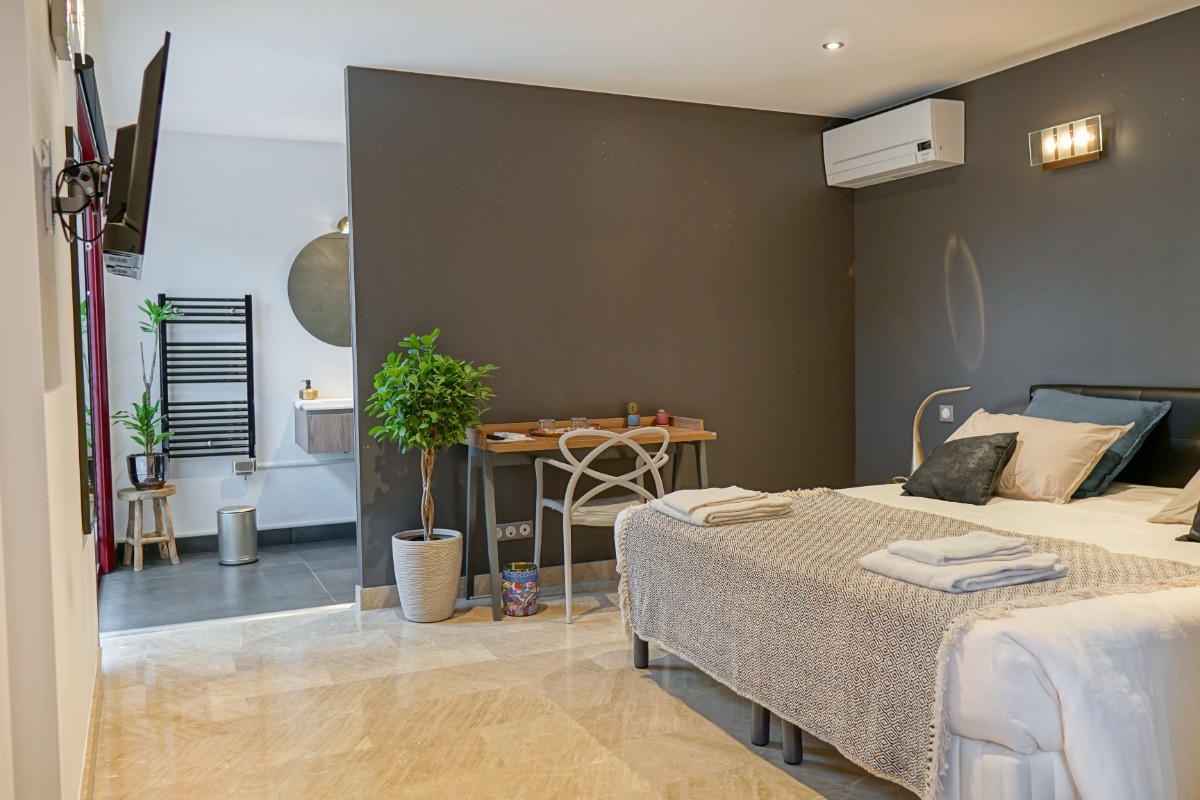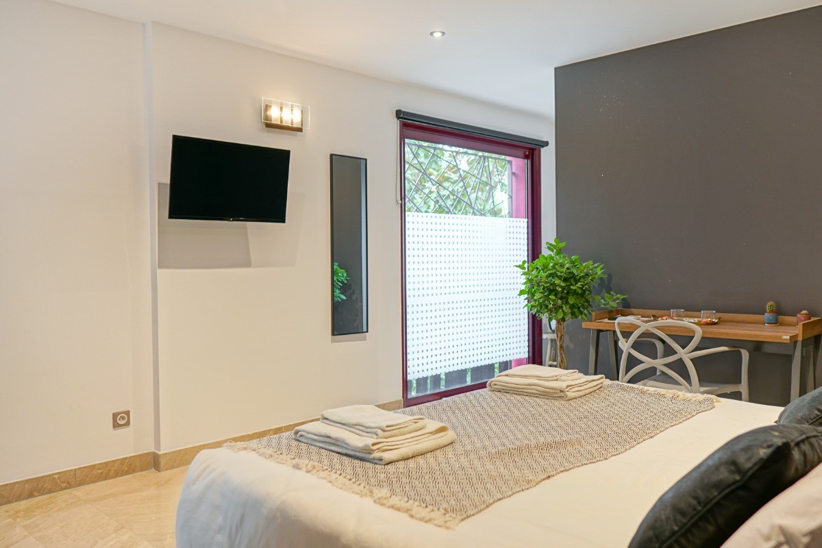 Découvrez la chambre d’hôtes “l’Hortus” disponible à la réservation à Montpellier Réservez un séjour inoubliable dans la chambre d’hôtes l’Hortus à Montpellier, au sein de la charmante villa Magnolia. Notre villa propose cinq chambres d’hôtes modernes et spécieuses, chacune avec une entrée indépendante pour une intimité maximale. Profitez de la Piscine Extérieure Chauffée Vous bénéficierez d’une piscine extérieure chauffée ouverte de Mai à Septembre, pour vous détendre sous le soleil méditerranéen. Confort et Élégance : La chambre Hortus est un véritable cocon de 24m2, offrant une atmosphère intime et douillette grâce à sa décoration pailleté qui lui donne un style moderne. Cette chambre s’ouvre sur un patio arboré. Elle possède une salle d’eau privative, un lit king size de 180 cm, il est possible également de faire deux lits en 90 cm. Nous pouvons accueillir 2 personnes et 1 bébé ( lit parapluie à disposition) Petit déjeuner continental inclus : Le petit déjeuner continental est servi de 8h30 à 10h45 dans la salle prévue en cet effet ou en terrasse si le temps le permet. Dans cette salle vous trouverez un micro-ondes, une bouilloire ainsi qu’un réfrigérateur que nous laissons à votre disposition. Nous pouvons également vous proposer des planches charcuteries, fromages, mixtes, tapas où les produits locaux et bio sont priorisés, à réserver 24h à l’avance. Nous faisons table d’hôtes également comprenant entrée, plat, dessert, boisson et café. Réservation obligatoire 48h à l’avance. Un parking publique gratuit en face de la maison. Il est possible de recharger un véhicule électrique à l’intérieur de la maison pour 10€ la recharge. Toute les chambres sont équipées de Wifi avec espace de travail, d’une télévision connectée avec Netflix et Canal + Depuis la villa, vous pouvez facilement accéder aux tramways et bus de la métropole montpelliéraine, vous offrant des déplacements pratiques et rapides à travers la ville et ses environs. Réservez dès maintenant votre séjour et découvrez tout le charme de Montpellier !