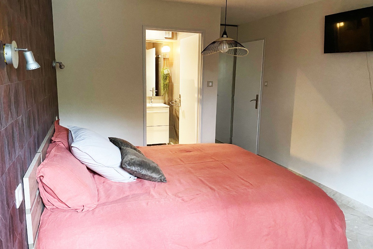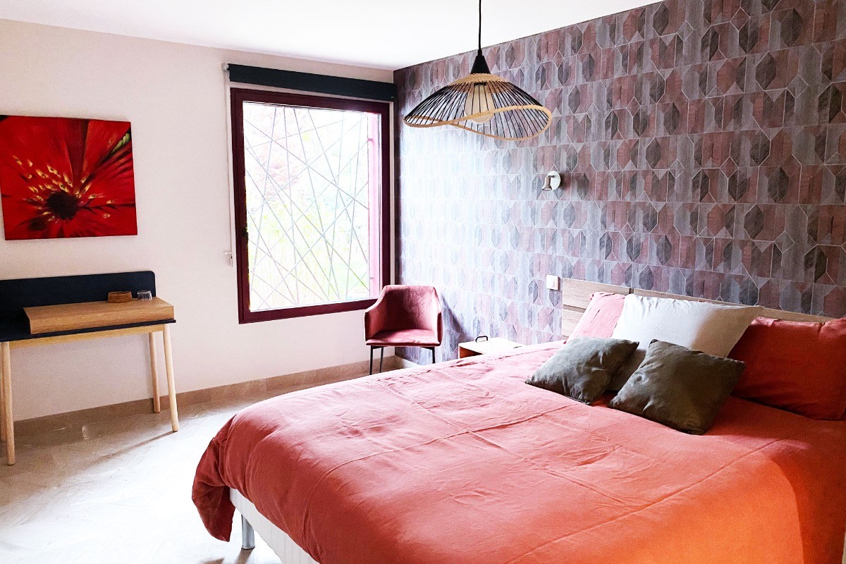 Réservation de chambre d’hôtes à Montpellier Découvrez la Villa Magnolia avec ses cinq chambres d’hôtes modernes et spacieuses, dotée d’une entrée indépendante pour une intimité totale. Description de la suite Salagou La chambre “Salagou” est d’une superficie de 17m2, elle se situe à l’écart des autres chambres pour votre plus grand plaisir. Elle offre une vue sur le jardin, elle est calme et reposante avec sa décoration cocooning. La chambre est équipée d’une salle d’eau privative avec WC. Vous bénéficierez d’une piscine extérieure chauffée ouverte de Mai à Septembre Le petit déjeuner continental est servi dans une salle ou en terrasse si le temps le permet. Les horaires sont de 8h30 à 10h45 mais nous pouvons nous adapter à vos exigences. Nous pouvons également vous proposer des planches charcuteries, fromages, mixtes, tapas où les produits locaux et bio sont priorisés. Réservation obligatoire 24h avant votre arrivée. Un diner vous est proposez également comprenant entrée/plat/dessert/boisson et café. Réservation obligatoire 48h. Un parking publique gratuit en face de la maison, ainsi que la possibilité de recharger votre véhicule électrique à l’intérieur de la villa pour 10 € par nuit Toute les chambres sont équipées de Wifi incluant Canal +, Netflix ainsi qu’un espace de travail. Réservez dès maintenant pour vivre une expérience inoubliable, où chaque détail est pensé pour votre confort et votre bien être.