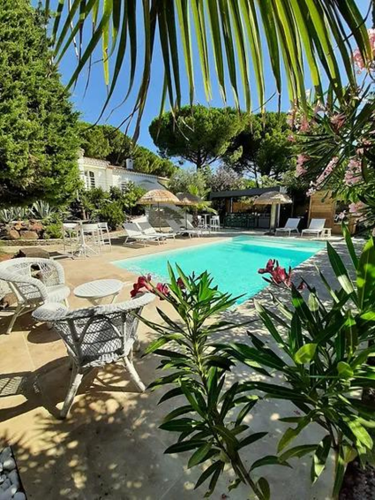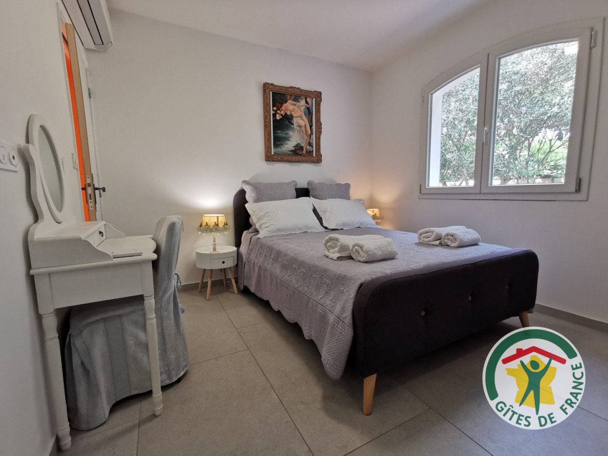 Chambres d’hôtes de caractère où vous pourrez séjourner en toute tranquillité. Les 5 chambres sont chacune pour 2 personnes. L’une des chambres (Love Room Baobab) dispose d’un jaccuzzi et d’un sauna privatifs. Profitez d’un moment de détente à la piscine, ou bien dans le jardin aménagé. Vous trouverez tout le confort possible pour une escapade réussie. Idéal pour un séjour en couple. La piscine dispose de transats avec parasol. “Vous avez la possibilité de bronzer avec ou sans traces de maillots au bord de la piscine”. Un terrain de pétanque ainsi qu’une table de massage sont à votre disposition. Les propriétaires peuvent vous donner les contact de masseurs professionnels. Vous pourrez également découvrir l’art et l’artisanat malgache dans la boutique de madame. ATTRAITS TOURISTIQUES : Cap d’Agde, Marseillan, Sète, l’étang de Thau (parcs ostréicoles), Béziers, Pézenas, Canal du Midi, sports nautiques, plages. – Une nuit romantique dans une ambiance paisible : chambre de 13m² avec lit 140×200, climatisation reversible. Salle d’eau avec douche à l’italienne. Toilette privatif indépendant de la salle d’eau.
