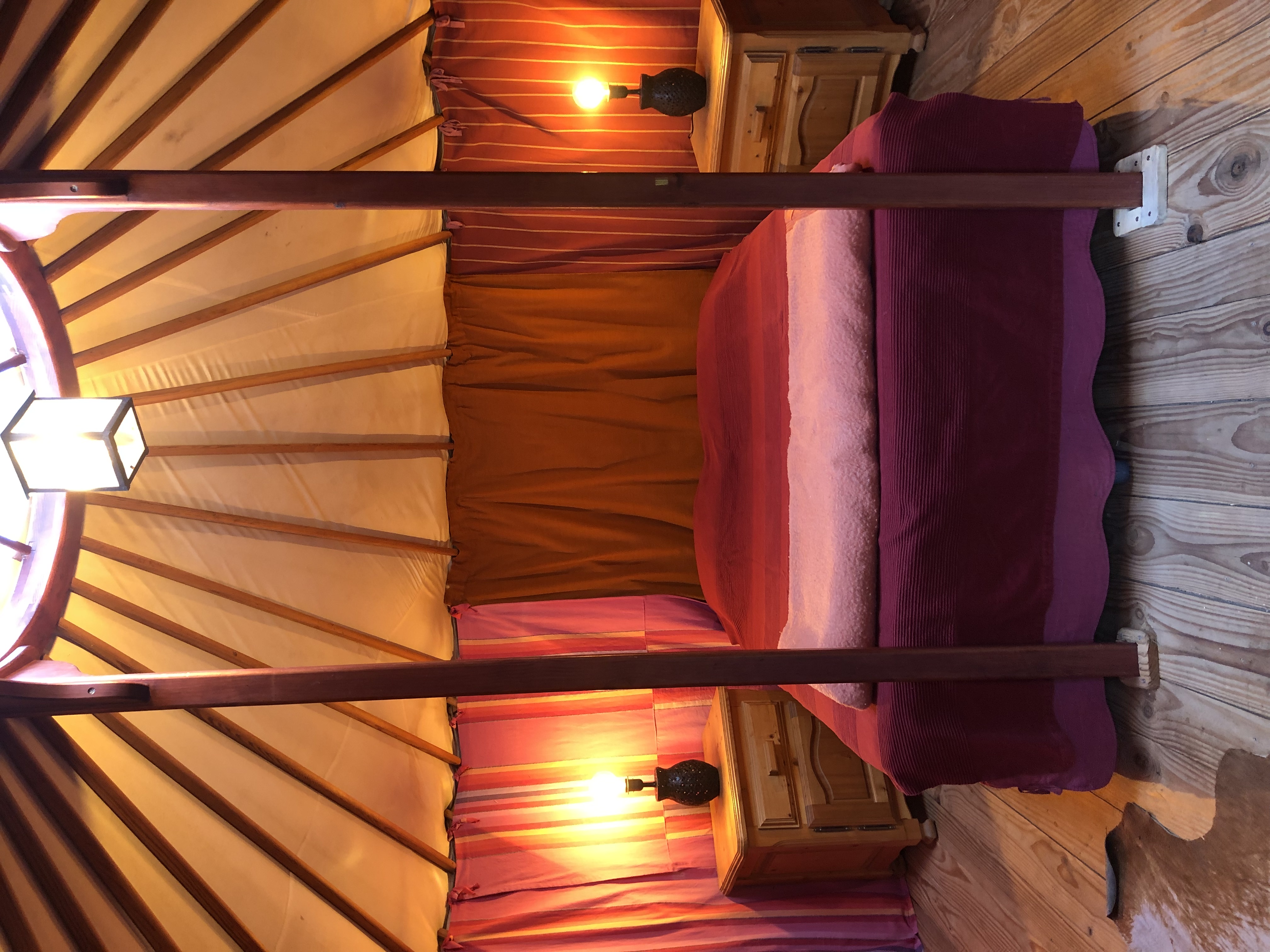 Découvrez le plaisir insolite d’un hébergement en Yourte. Cet hébergement insolite correspond pleinement à notre philosophie de simplicité et d’authenticité. Au cœur de notre ferme, nos Yourtes seront le point de départ idéal pour des randonnées sur le Causses le Mont Lozère et les Gorges du Tarn. La Yourte est équipée d’un lit double, de table de chevets, d’un meuble de rangement et d’une table avec deux chaises. Vous avez à disposition (à 50 mètres) des sanitaires avec douche, WC et lavabos. Ainsi qu’un espace cuisine avec gazinière, réfrigérateur/congélateur, lave-linge, cafetière, grille-pain, vaisselle, ustensiles de cuisine. A partager avec les occupants de l’autre yourte. Ainsi qu’une piscine hors sol 4X6 commune.