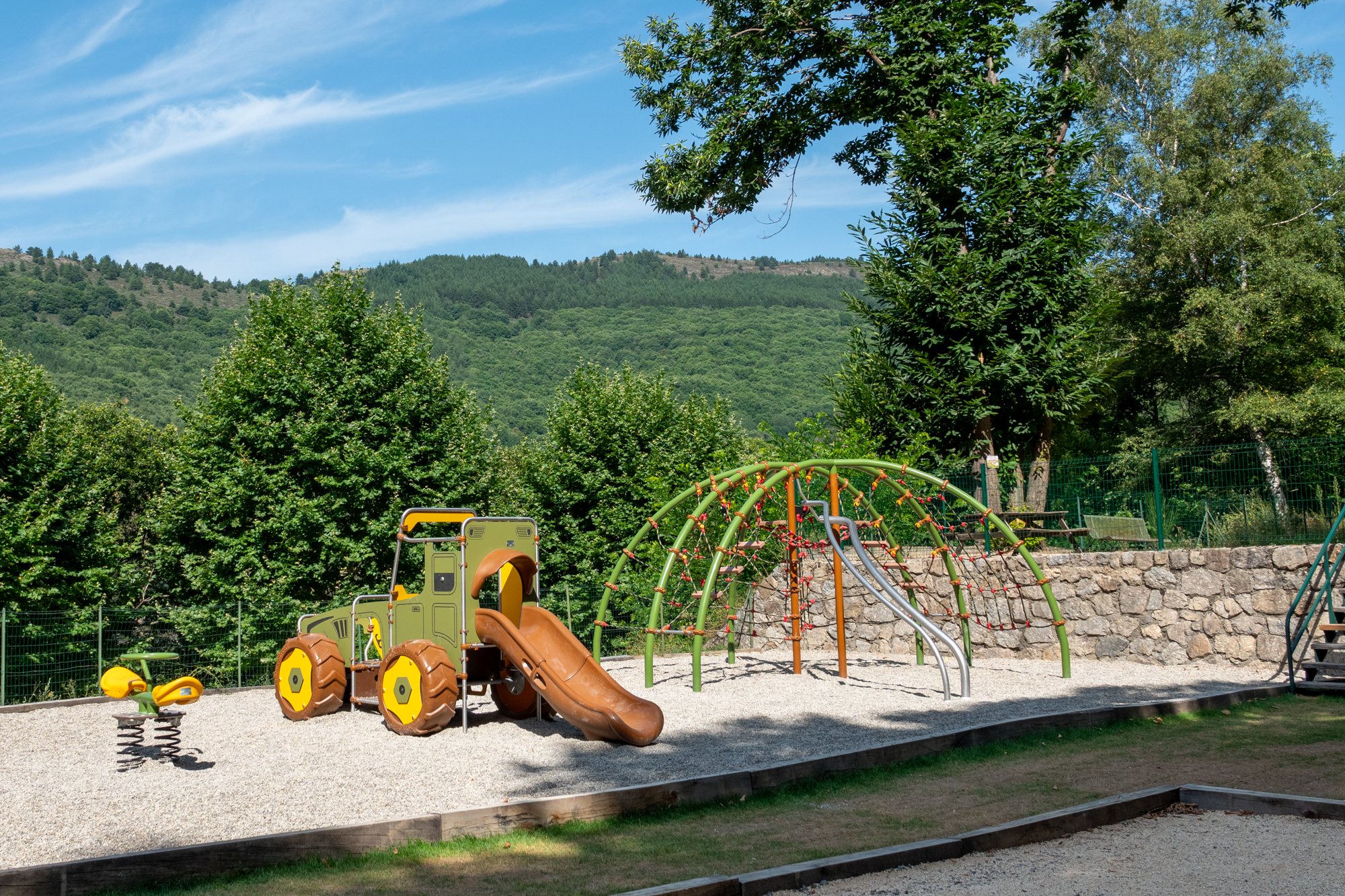 Come and spend a pleasant stay in a family campsite ideally located next to the lake of Villefort. Nearby you can practice pedal boating, sailing, swimming, fishing, via ferrata and at 5 km, the Golf of la Garde Guérin overlooks the Gorges du Chassezac ranked Grand National Site for climbing and canyoning. In the summer season swimming pool, takeaway and simple meals are proposed as well as bread and pastries. Groups of walkers, cyclists, riders, bikers, motorhomes, retirees, friends, athletes are welcome with preferential rates in half-board or full board accompanied by dishes in the image of our region for a tasting in a friendly atmosphere.